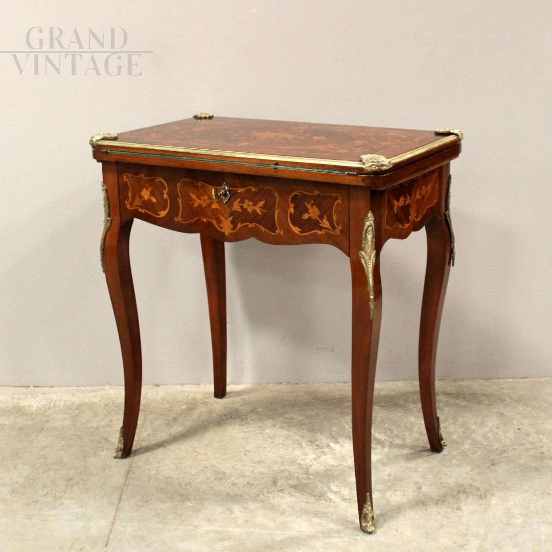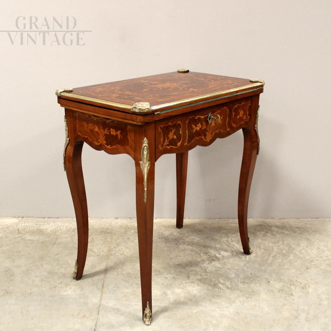 Tavolino da gioco scrittoio antico Napoleone III intarsiato