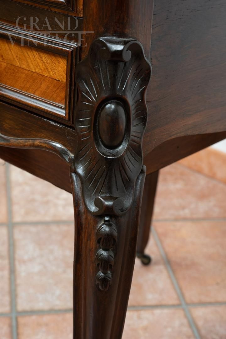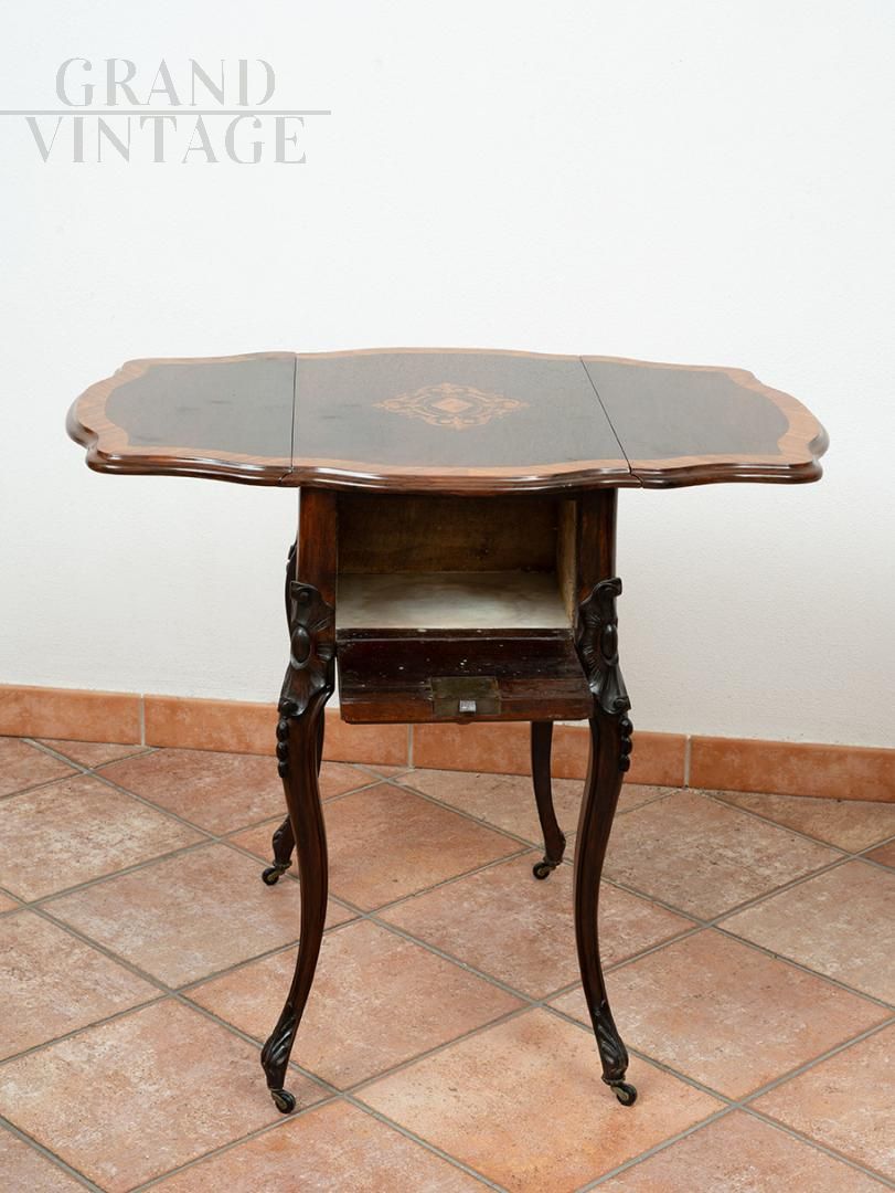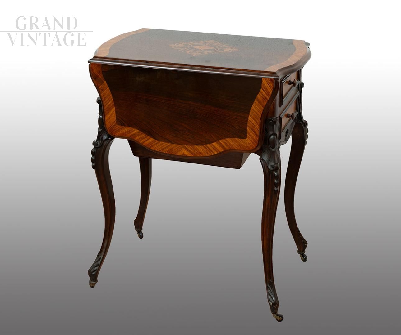 Tavolino da lavoro antico Napoleone III allungabile intarsiato