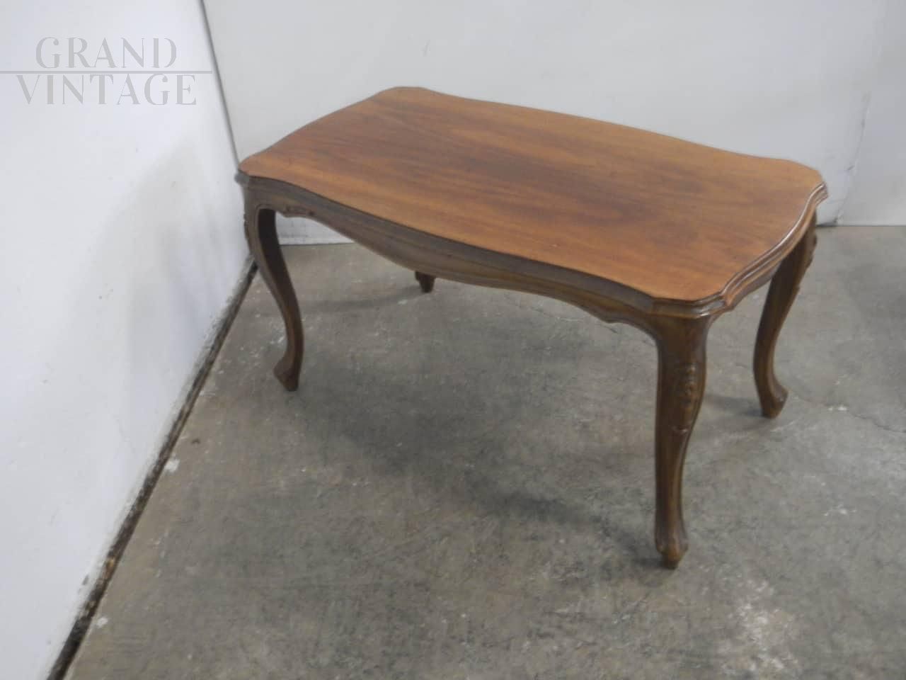 Tavolino da salotto vintage con gambe mosse e intagliate