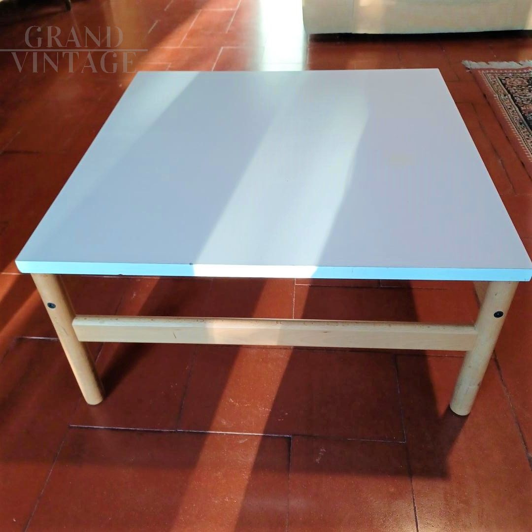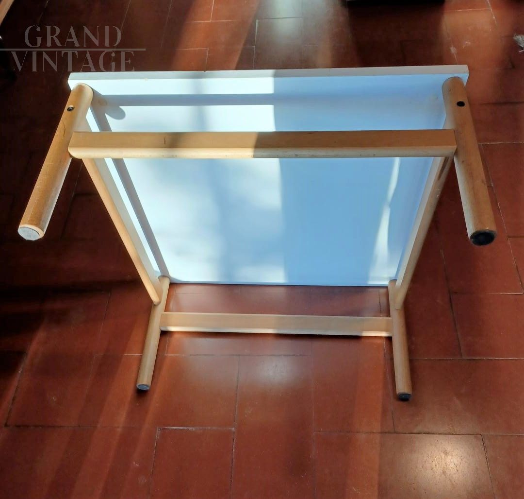 Tavolino da the Croff in legno con piano laccato bianco.