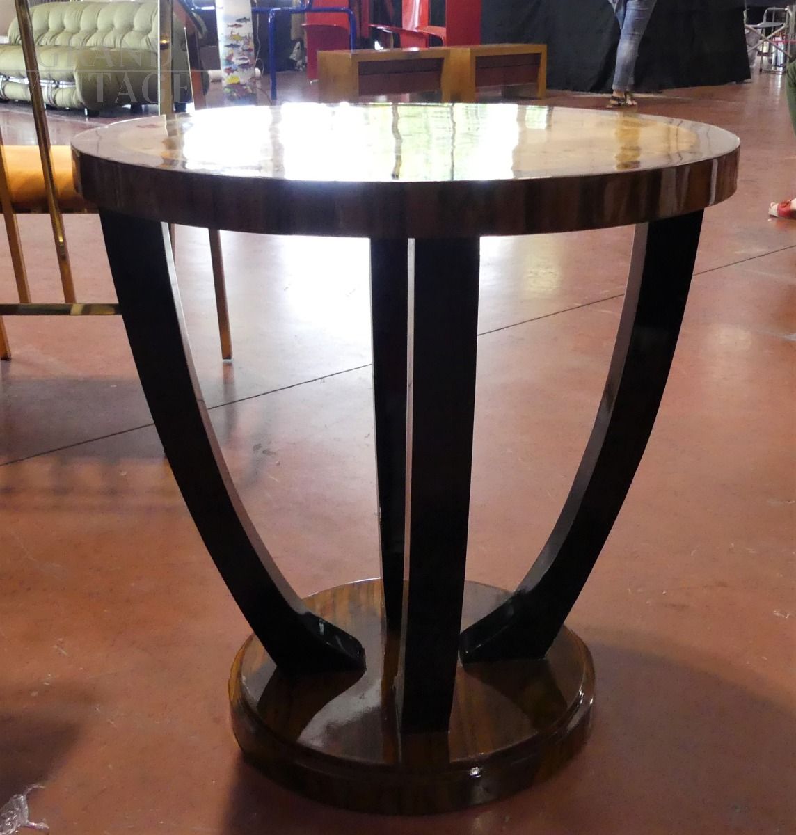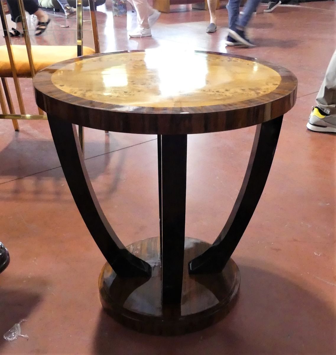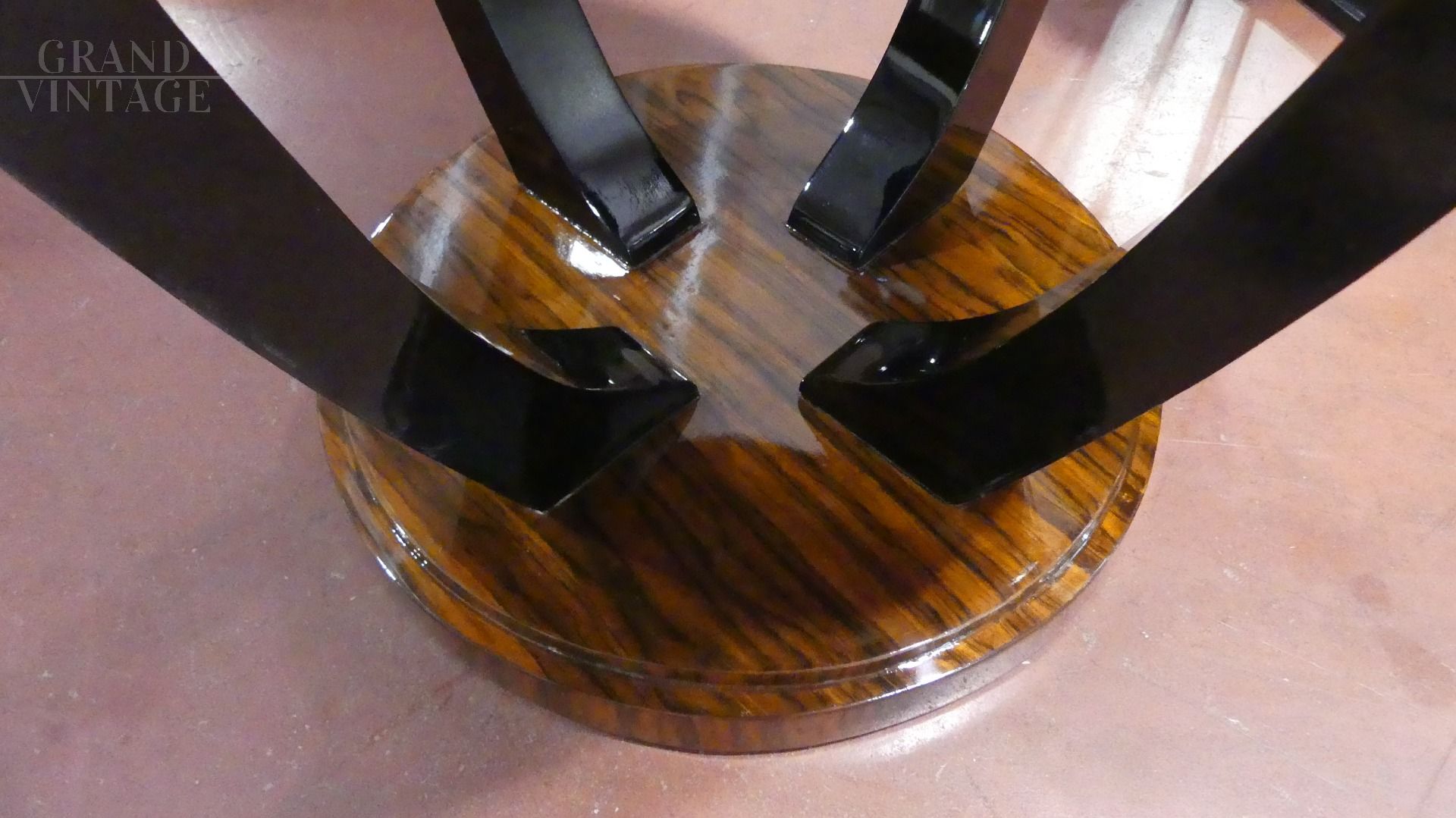 Tavolino in stile Art Déco di recente realizzazione, il piano è in una bellissima radica di betulla, e la struttura è in radica di palissandro e legno ebanizzato.