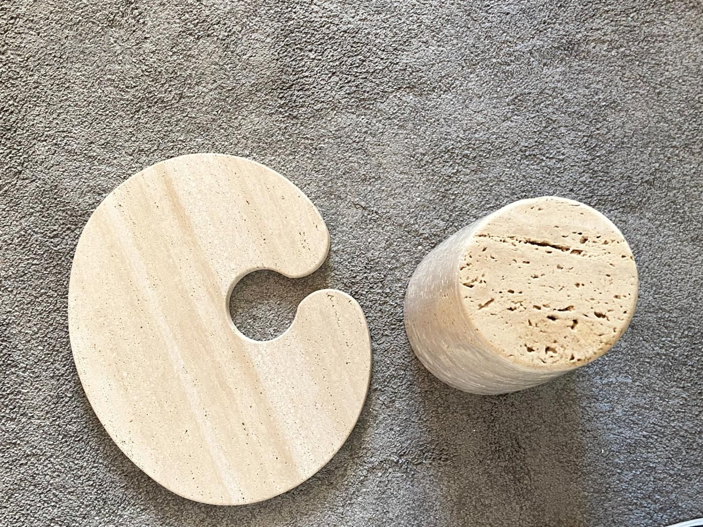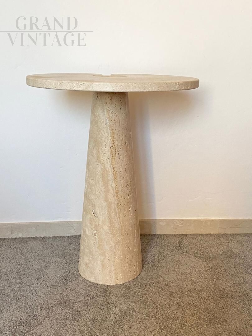 Tavolino design di Angelo Mangiarotti in travertino Italiano, serie Eros
