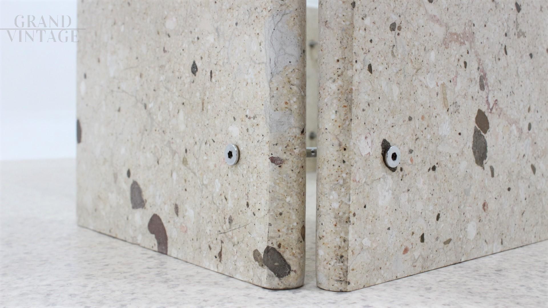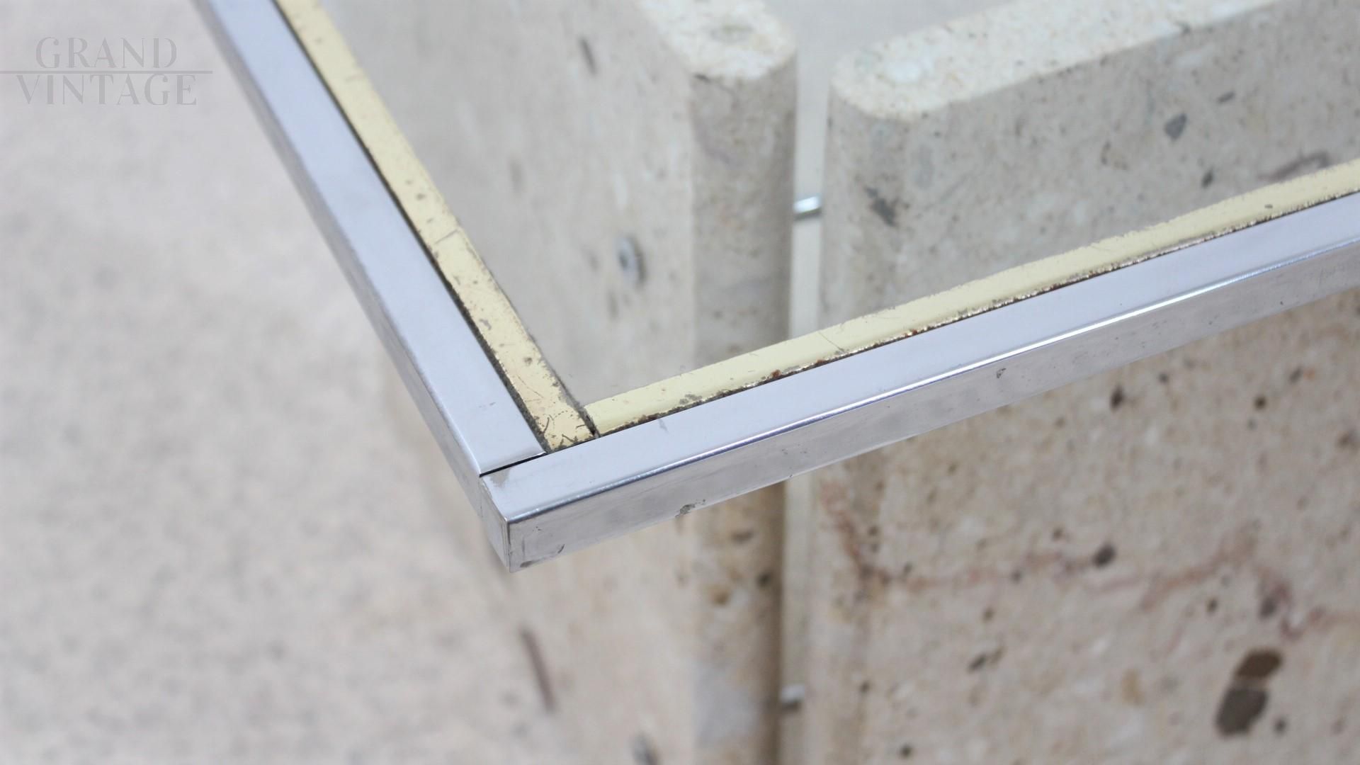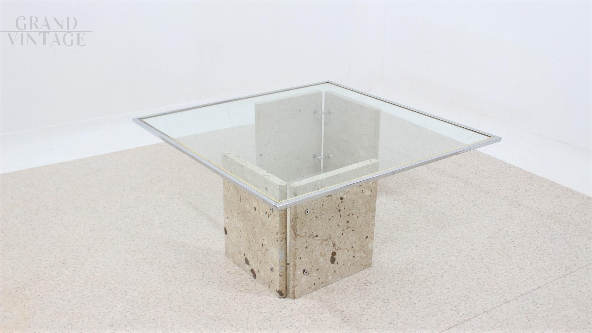 Tavolino design italiano in marmo con piano in vetro, anni '70