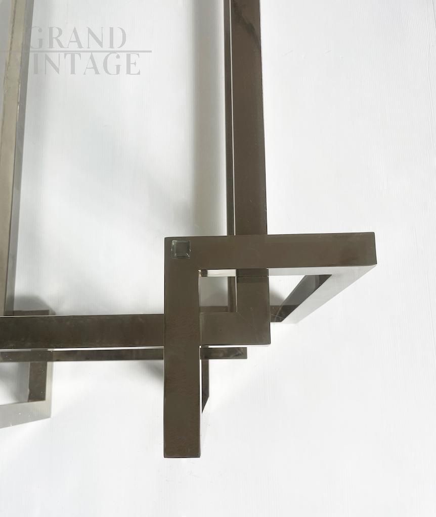 Tavolino geometrico di Romeo Rega in acciaio e vetro
