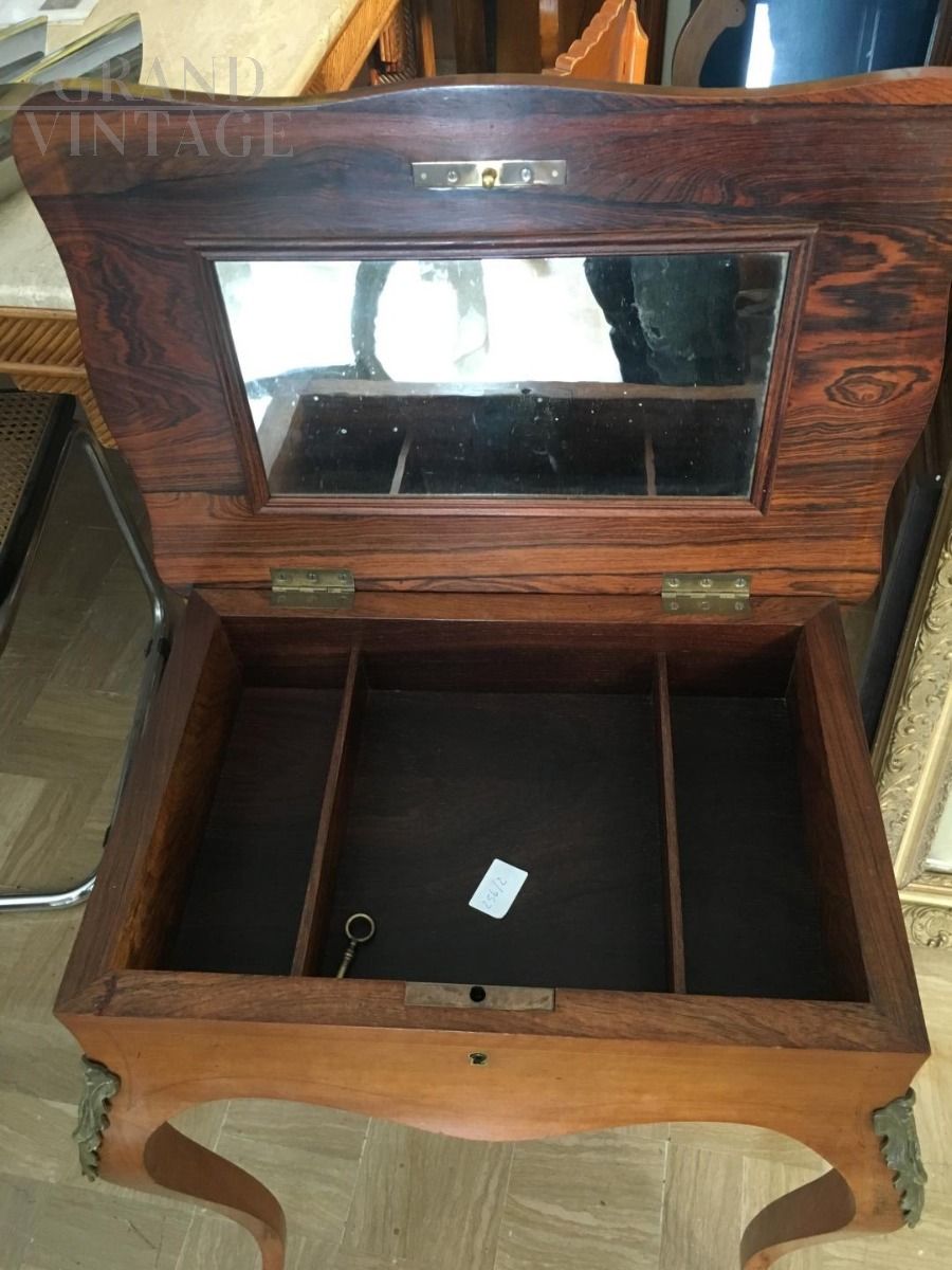 Piano ribaltabile con vano contenitore e piccolo specchio.