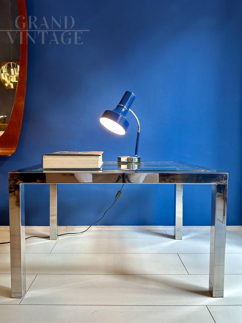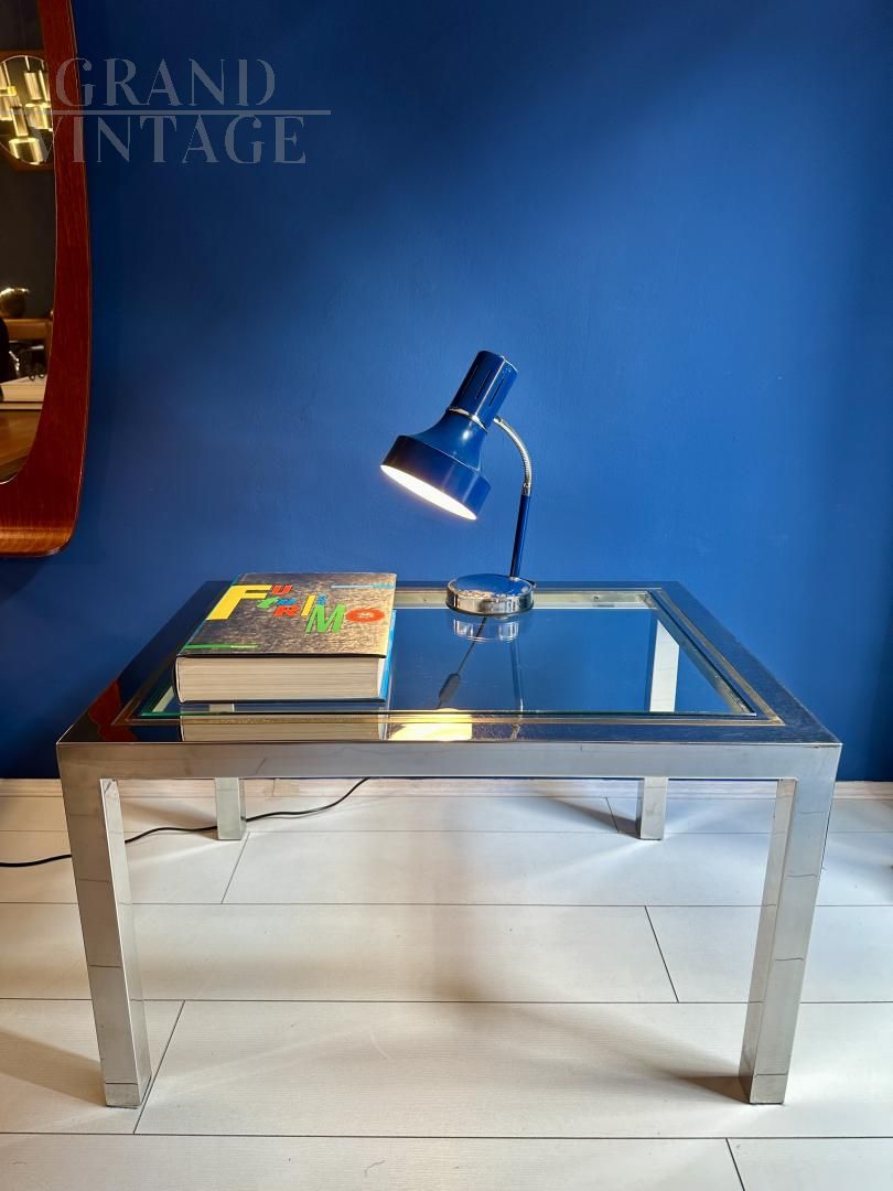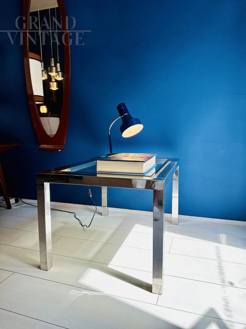 Tavolino modernariato in acciaio e vetro, anni '70