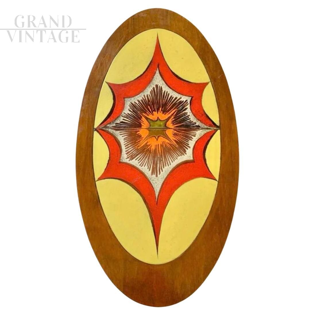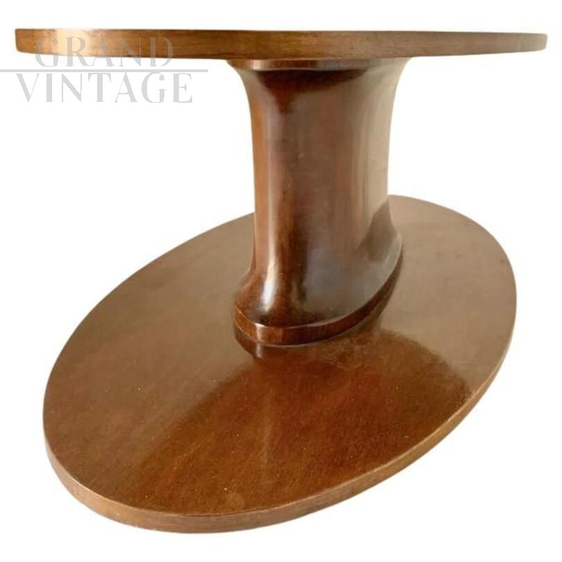 Tavolino modernariato ovale in massello di noce con piano dipinto, anni '60