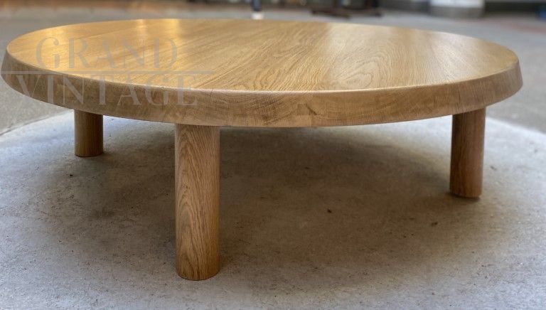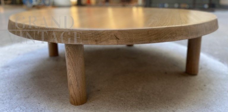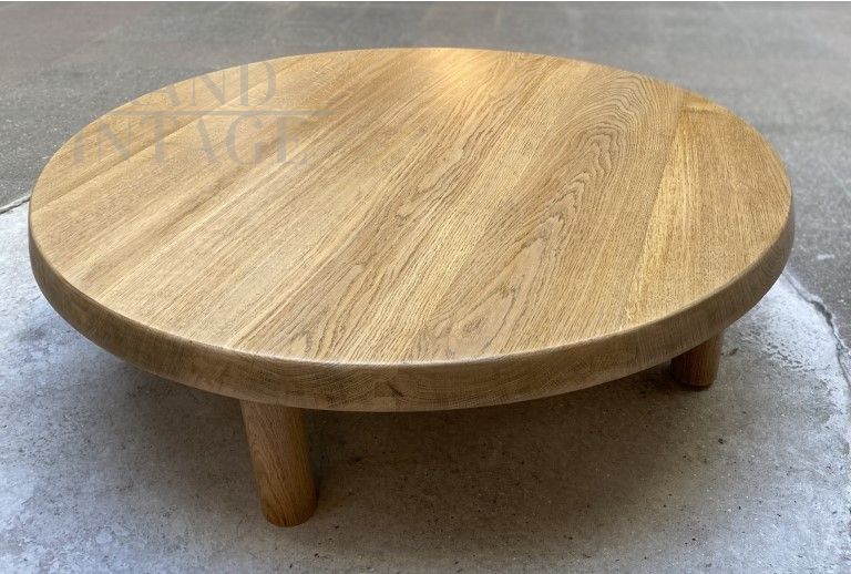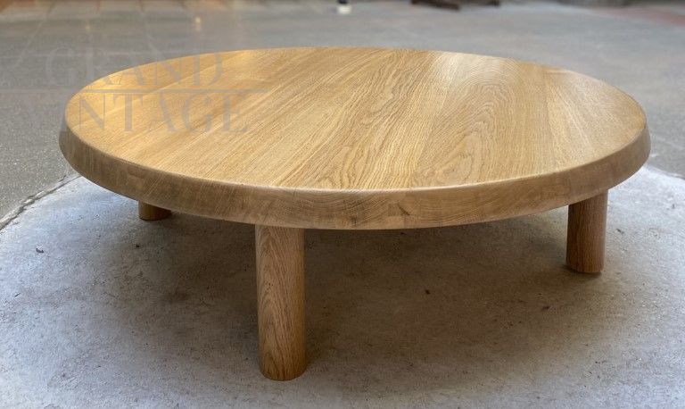 Tavolino da salotto design di Pierre Chapo, modello T02 - Table Basse di forma rotonda, prodotto in olmo massiccio in Francia, anni '70 circa, in eccellenti condizioni vintage e originali.