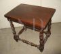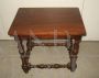 Tavolino antico a rocchetto in legno di noce massello dei primi del '900, stile seicentesco, costruito con legni vecchi nel XX secolo. Non restaurato, in buono stato generale in patina. Piedini parte finale aggiuntati, presenta segni di usura.