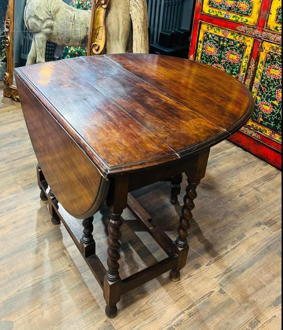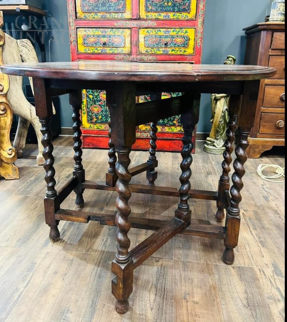 Tavolo antico richiudibile a bandelle con splendide gambe tornite, periodo 1910 - 1920.