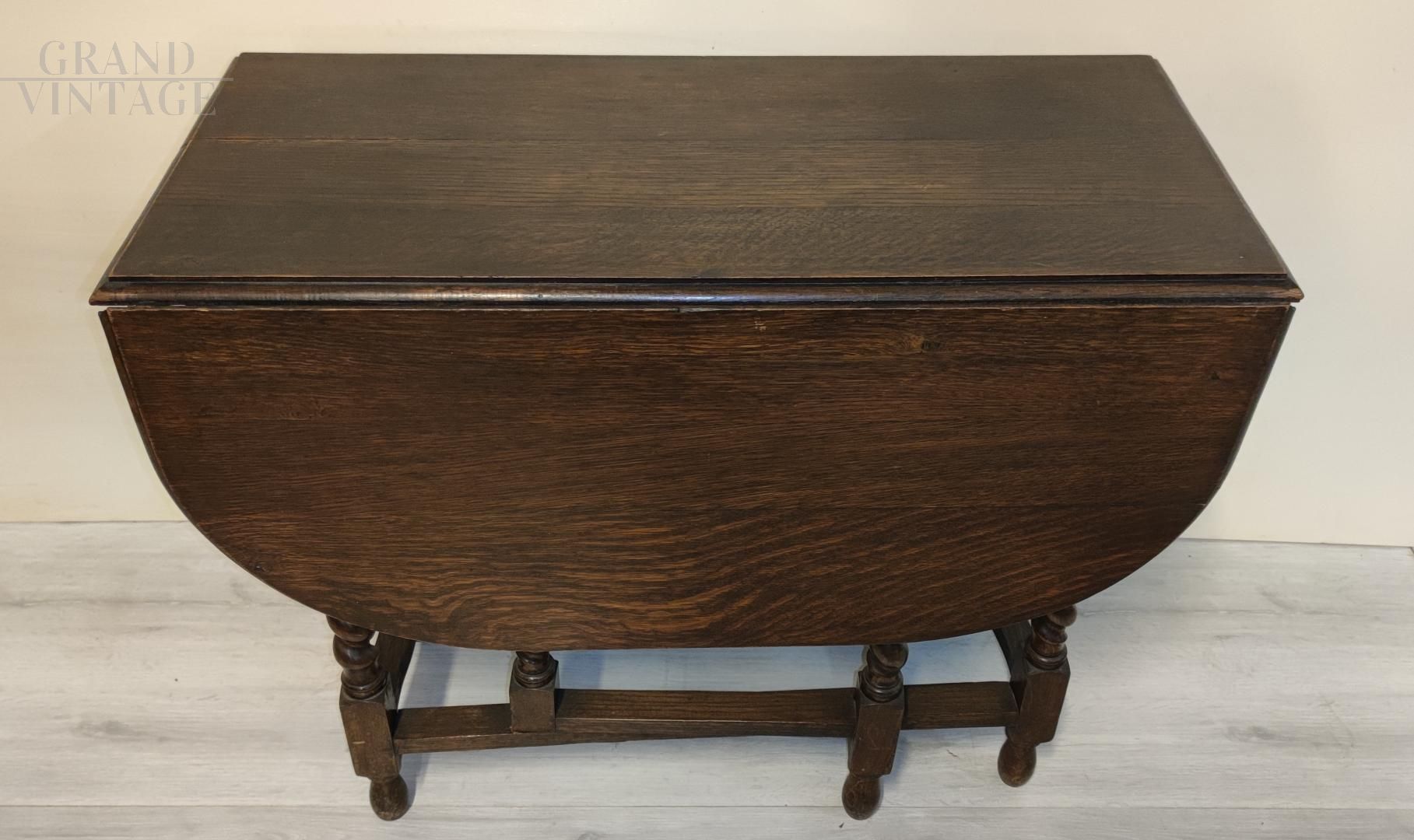 Tavolo a cancello antico inglese dell'800 con piano a rettangolo smussato e gambe a torchon.