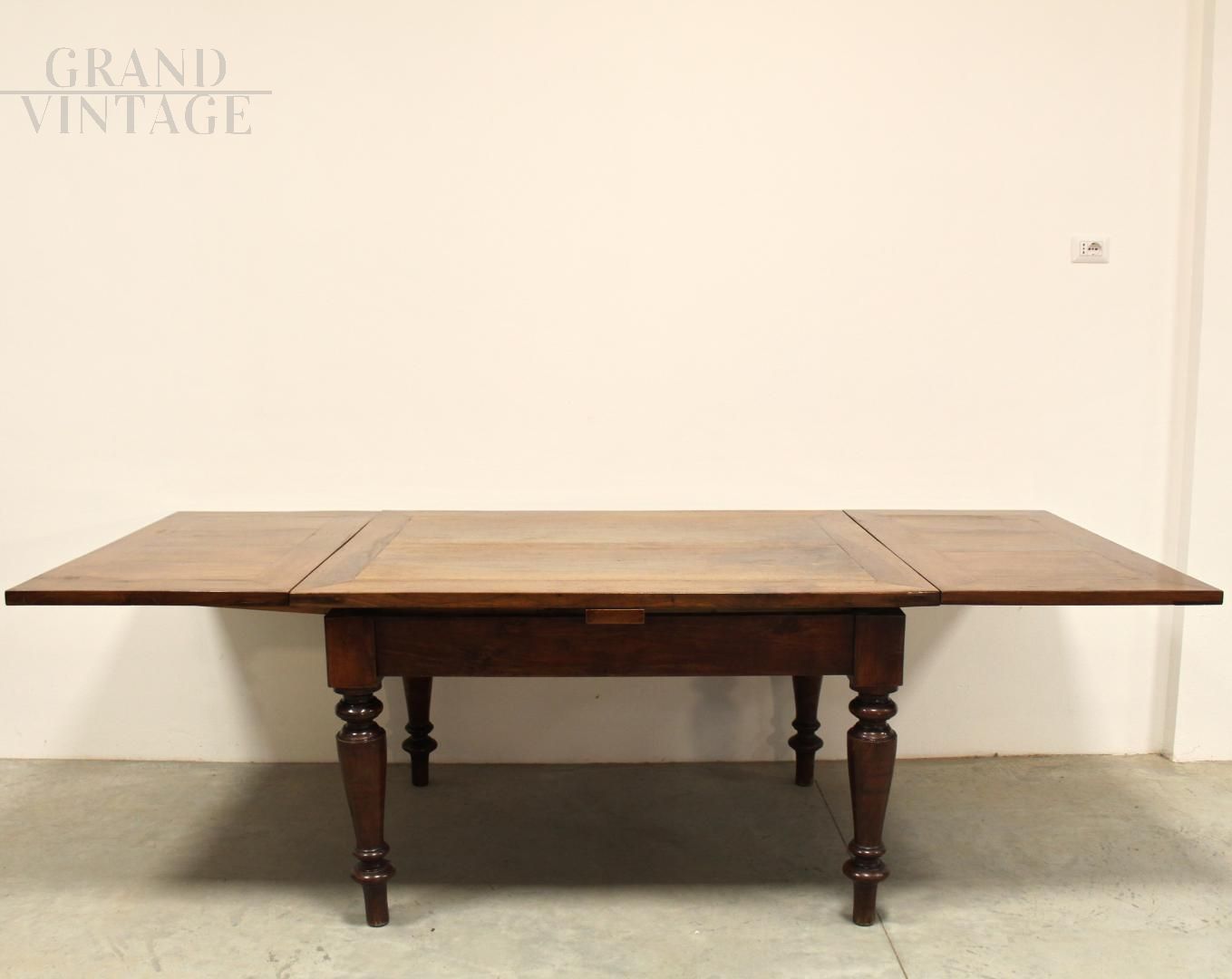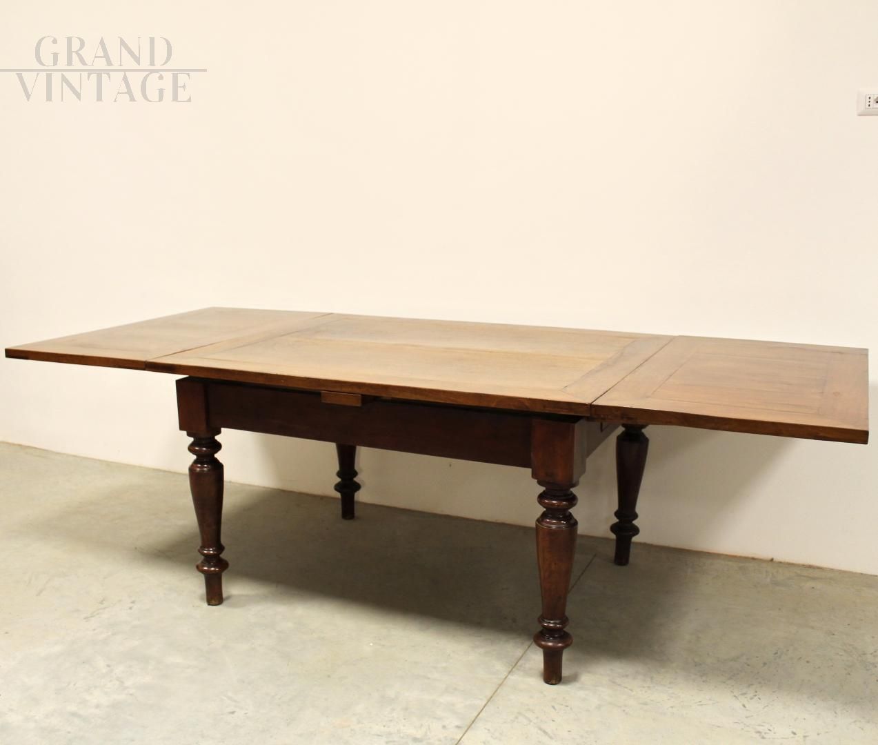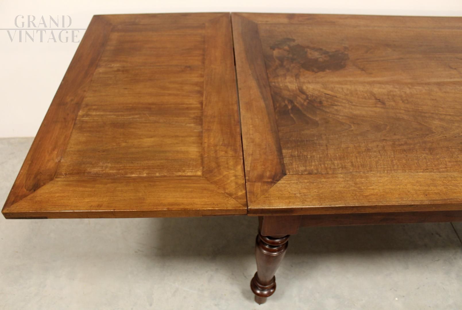 Tavolo allungabile a tiri Luigi Filippo in noce, Italia '800