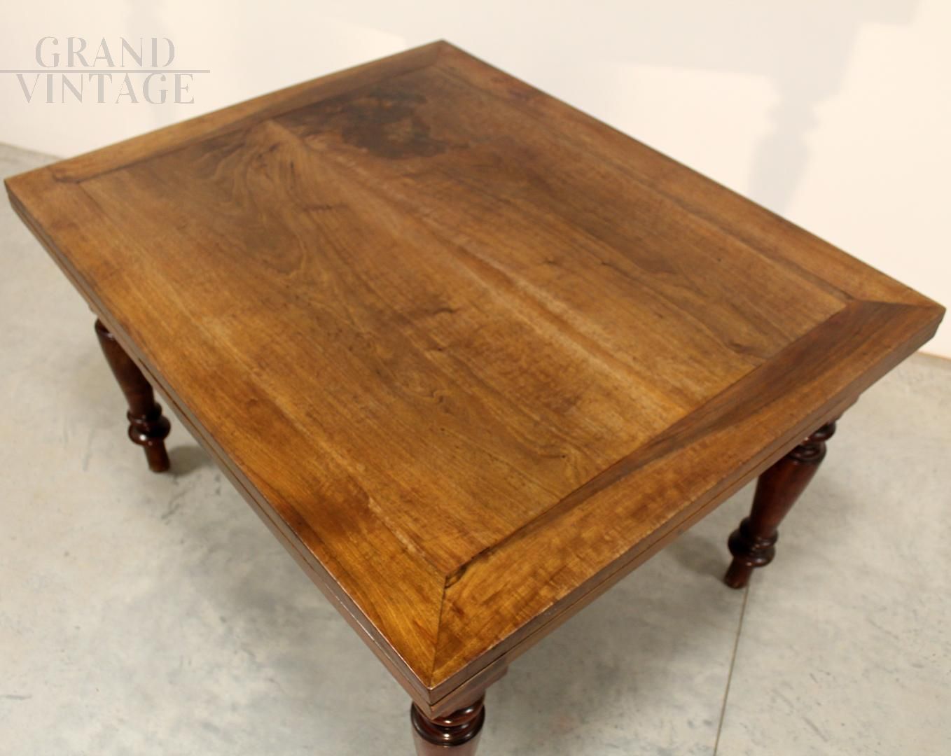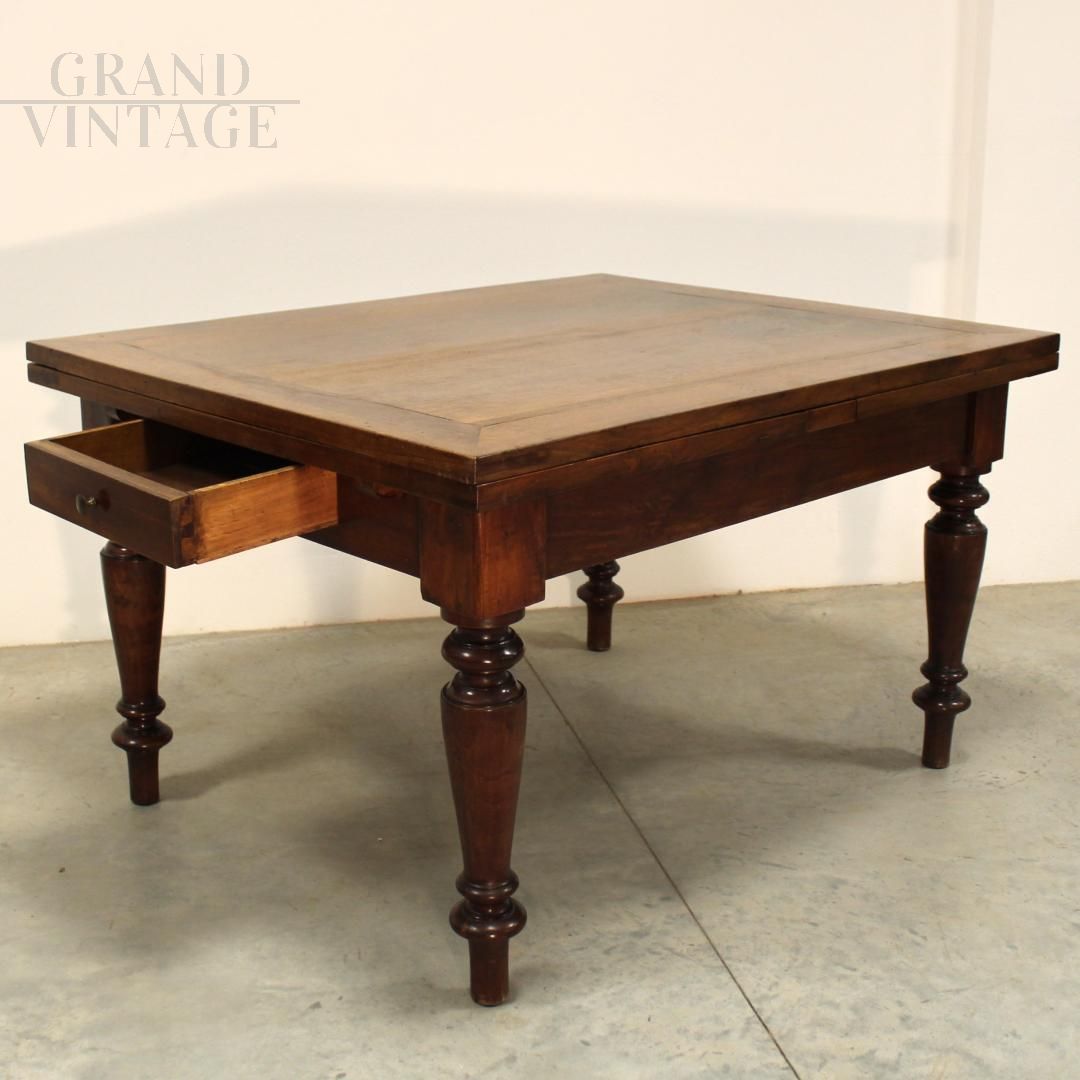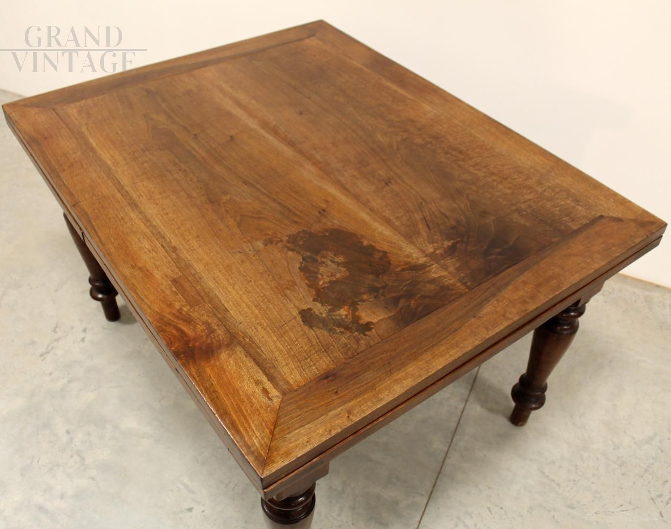 Tavolo allungabile a tiri Luigi Filippo in noce, Italia '800