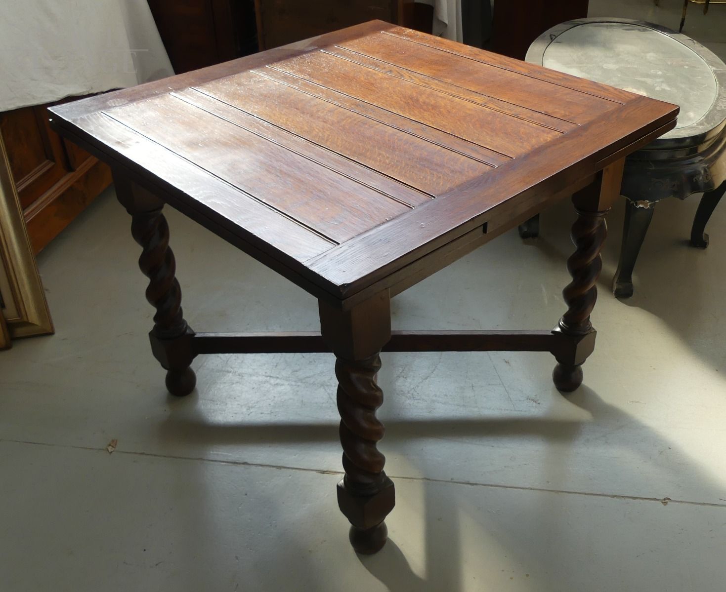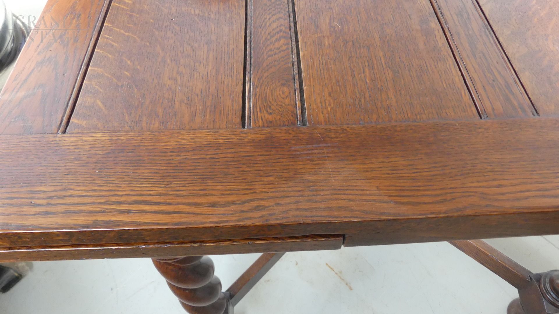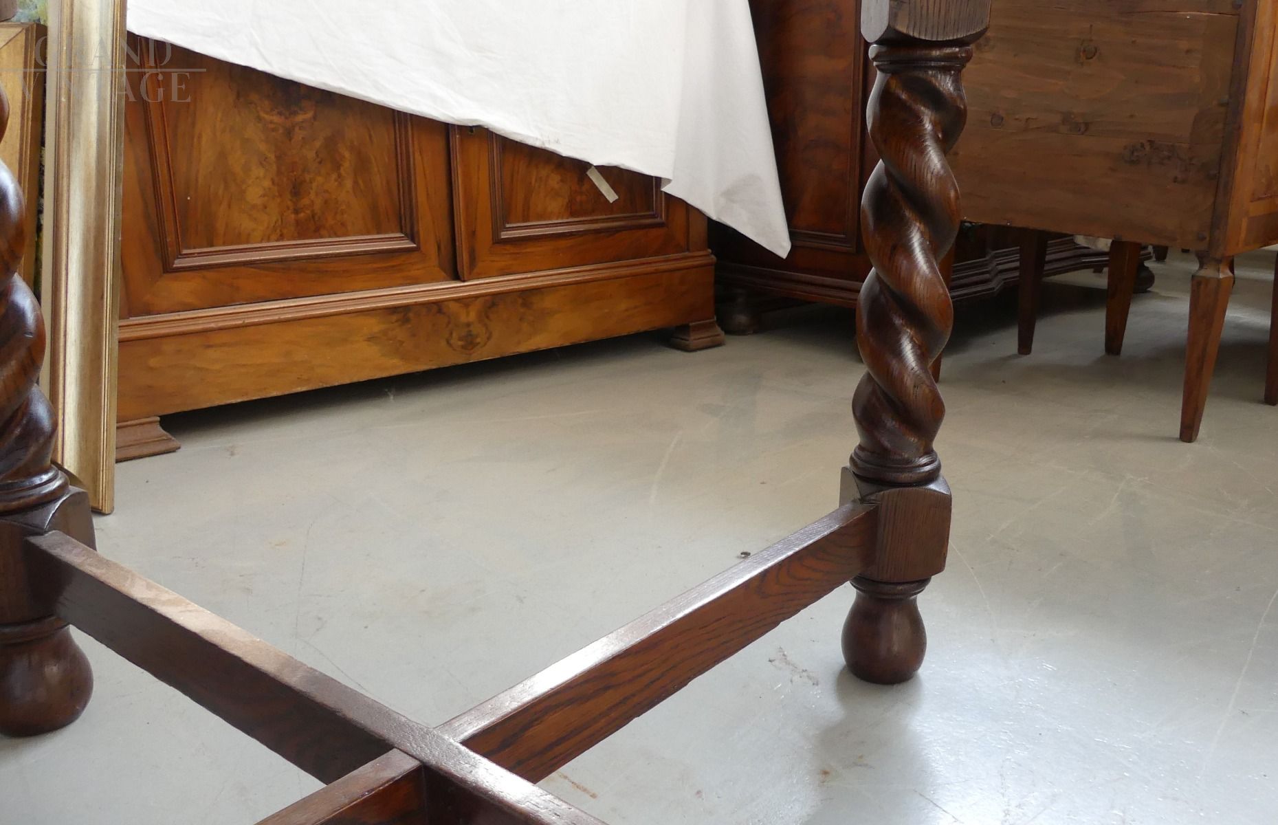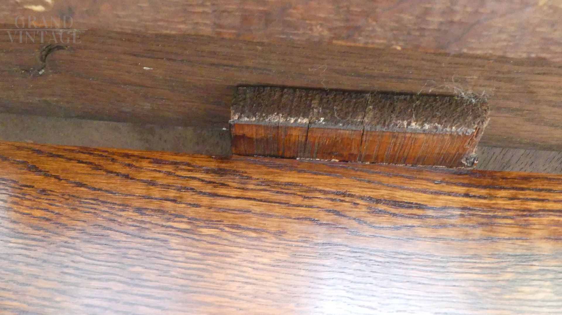 Tavolo vintage Inglese allungabile in legno di rovere, anni '50, con gambe elegantemente tornite unite da una crociera centrale. In buone condizioni, le misure indicate sono del tavolo aperto.