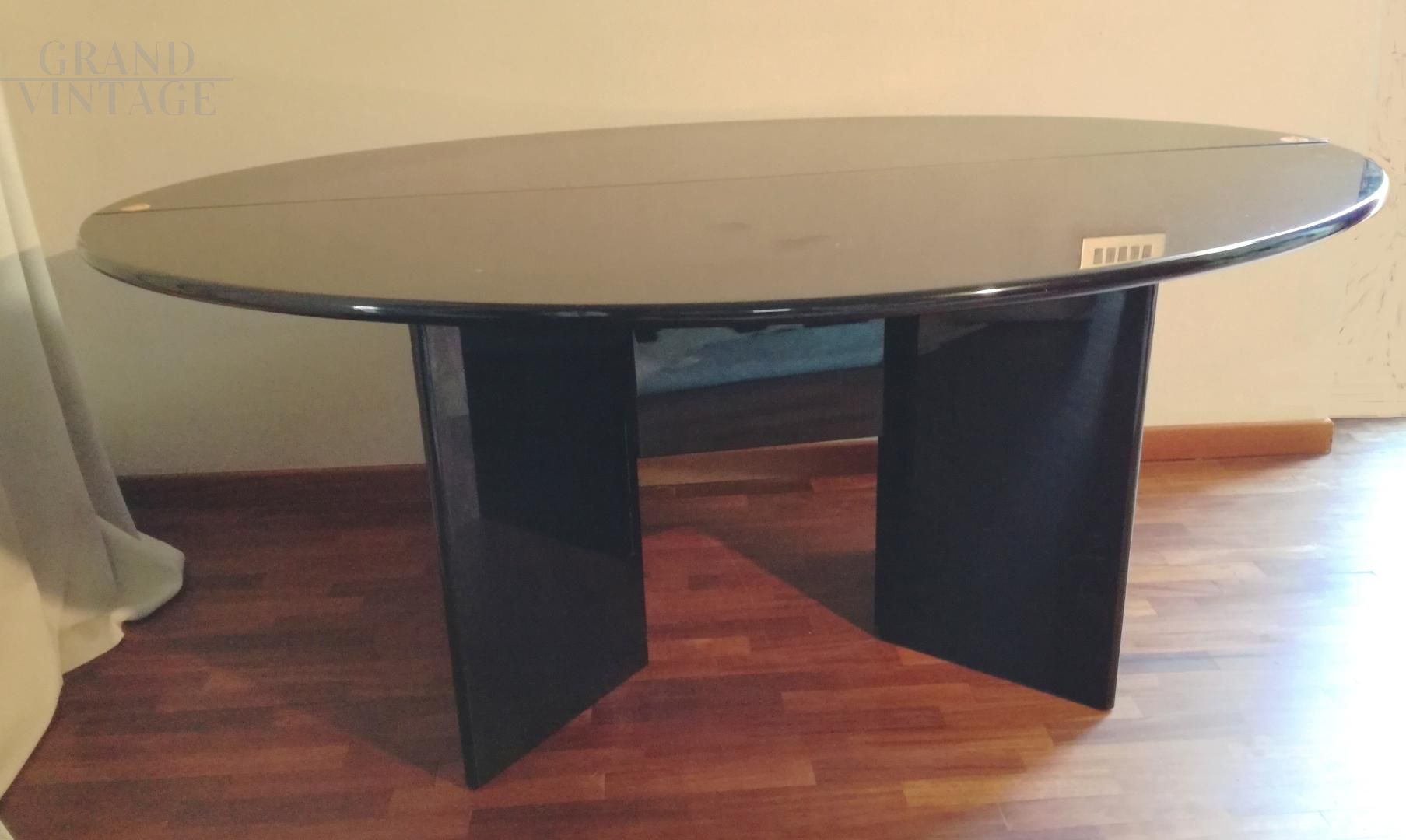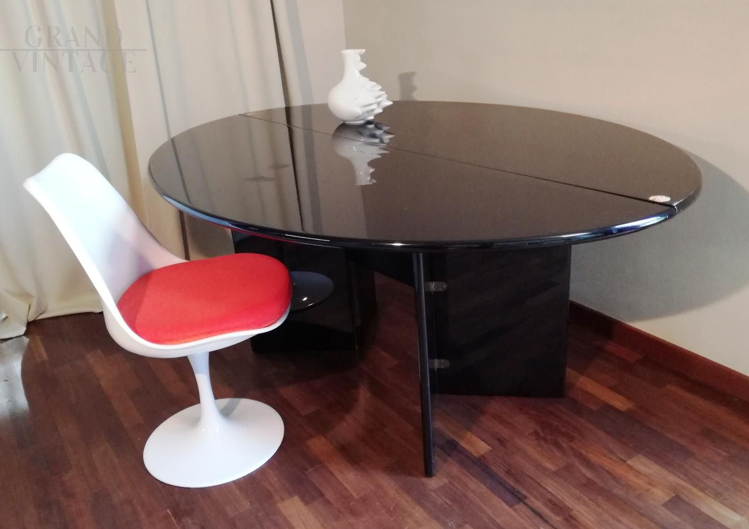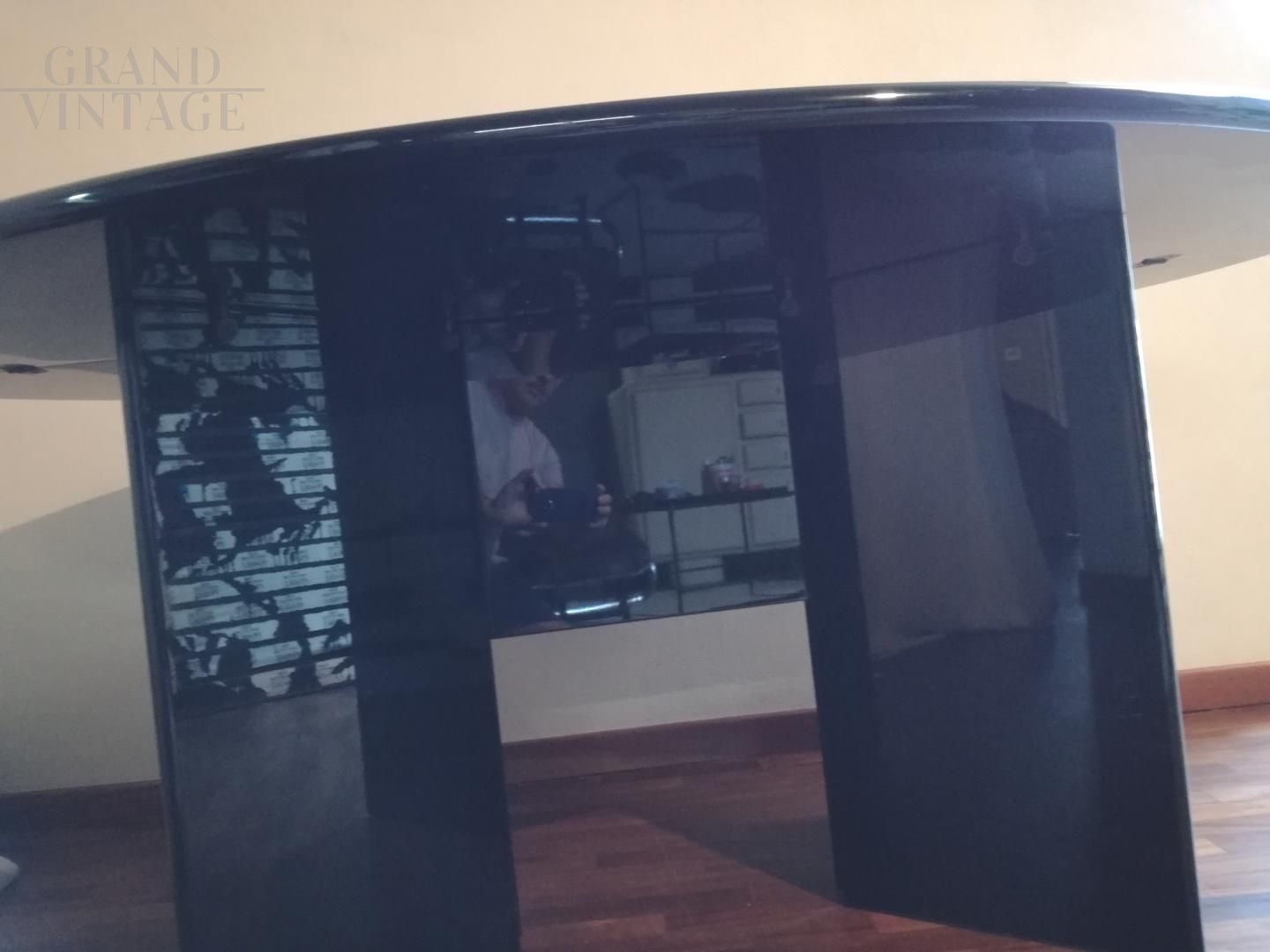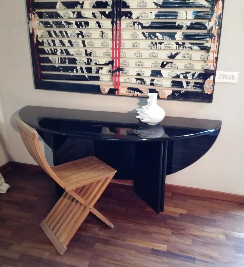 Tavolo consolle Antella di colore nero, design di Kazuhide Takahama per Simon Gavina anni '80. Il tavolo si piega a metà, rendendolo una elegante consolle da appoggiare al muro. Ingombro totale aperto: 122 x 170 cm.