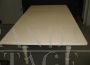 Tavolo in legno massello con piano di cm. 89 x 91,5. Sotto il piano nasconde due prolunghe allunghi di cm. 40 cada uno, che sfilandosi permettono al tavolo di allungarsi. Dotato di un cassetto nella fascia sottostante il piano e di eleganti gambe tornite. Il tavolo è stato restaurato completamente successivamente è stato laccato color avorio di recente, con invecchiamento a cera.