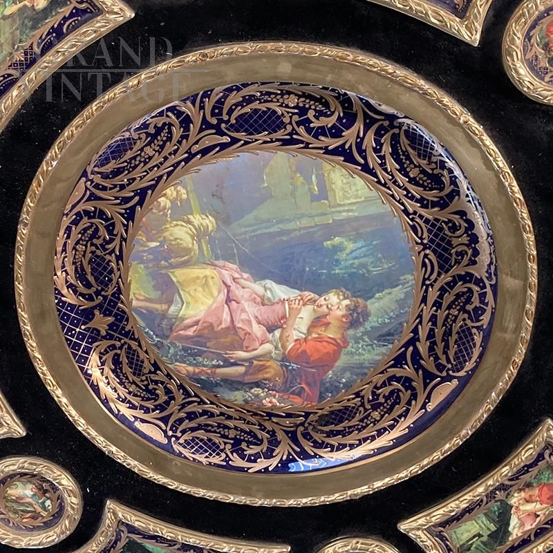 Tavolo circolare in stile Napoleone III francese con porcellane, fine XX secolo