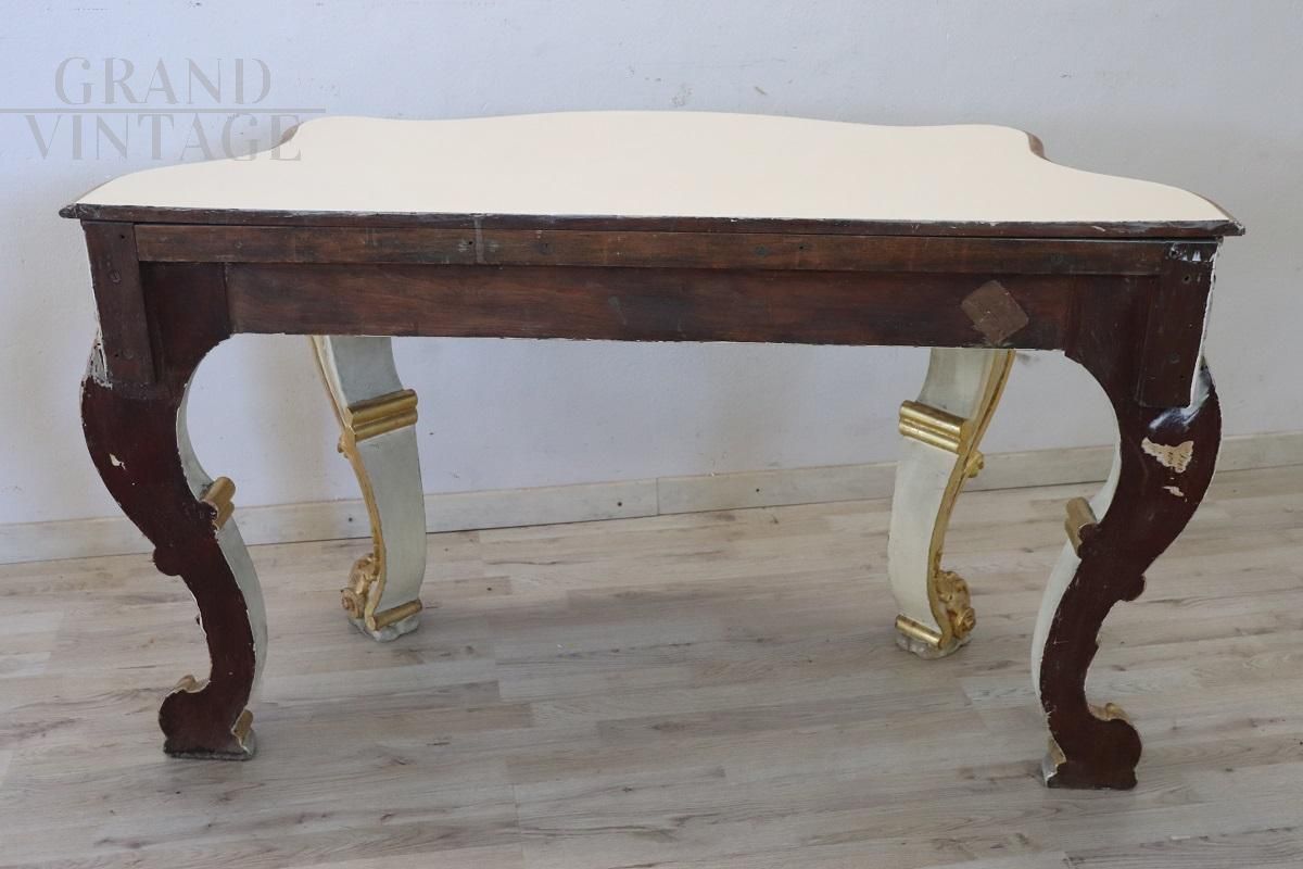 Tavolo consolle in stile antico in legno laccato e dorato, prima metà '900