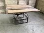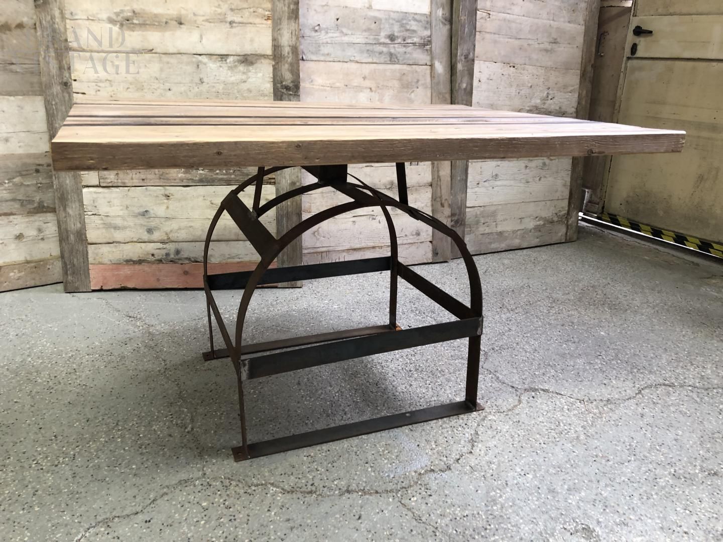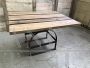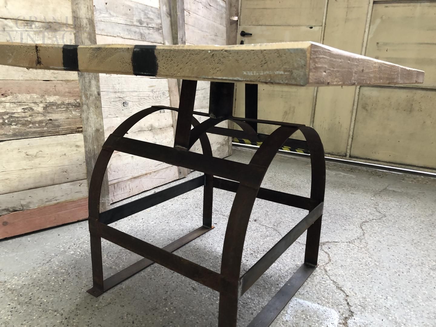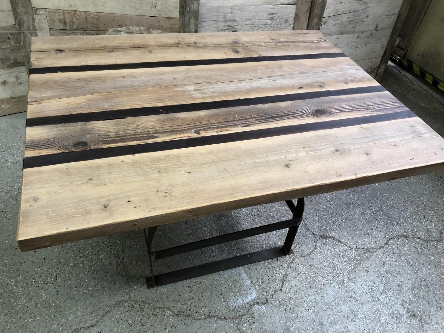 Due tavoli da cantina francesi in legno con struttura in ferro.