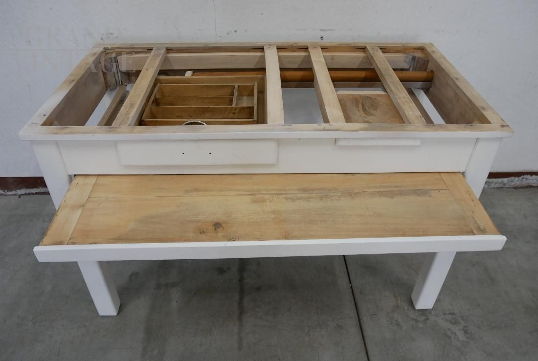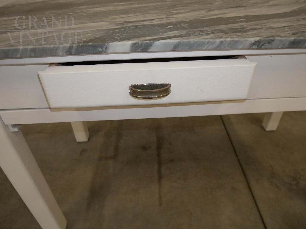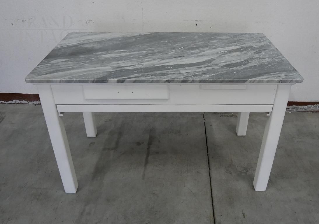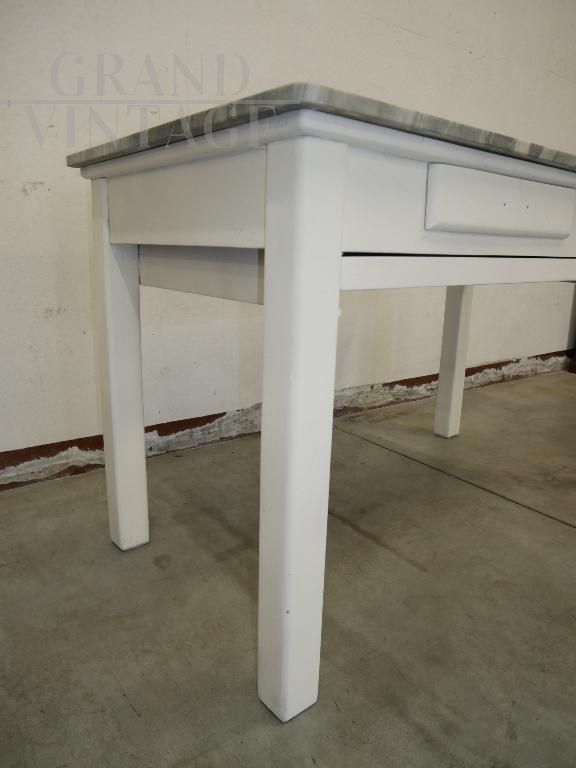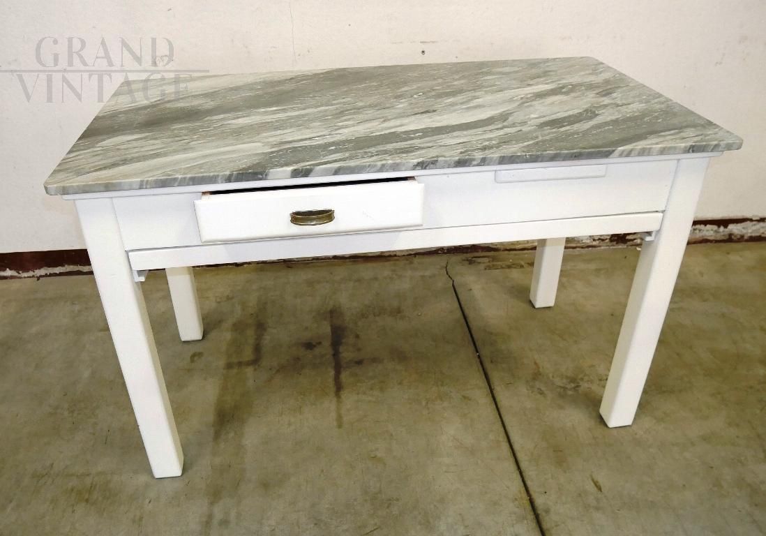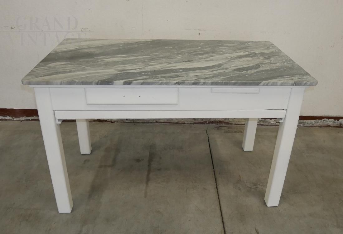 Tavolo da cucina anni '50 con piano in marmo, taglieri, mattarello e cassetto