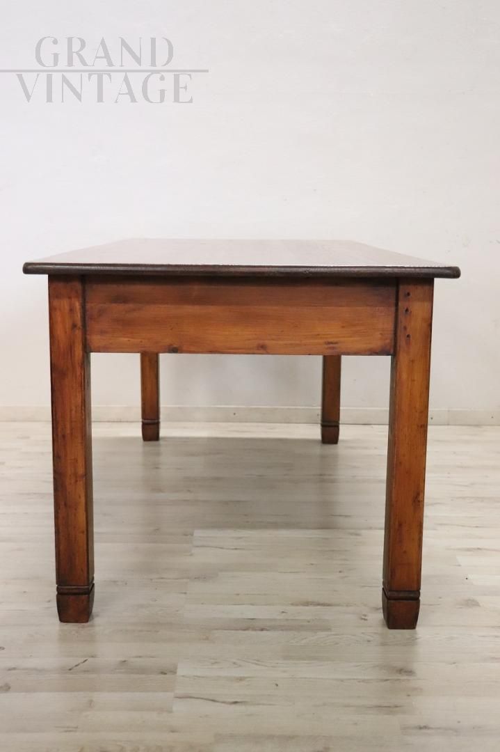 Vi presentiamo questo tavolo rustico italiano di buone dimensioni, realizzato nel XX secolo in legno massello di abete. Semplice e lineare è completato da un utile cassetto frontale, che lo rende funzionale. Lo spazioso piano del tavolo offre ampio spazio per una varietà di utilizzi: come tavolo da pranzo, come piano di lavoro in cucina o come ampia scrivania. La tonalità del legno chiaro lo rende facilmente coordinabile con vari colori e stili di arredamento, il suo aspetto rustico lo rende perfetto per una casa di montagna o di campagna. Restaurato nei nostri laboratori con un approccio professionale e conservativo è pronto per la collocazione in casa. Prezzo trattabile.