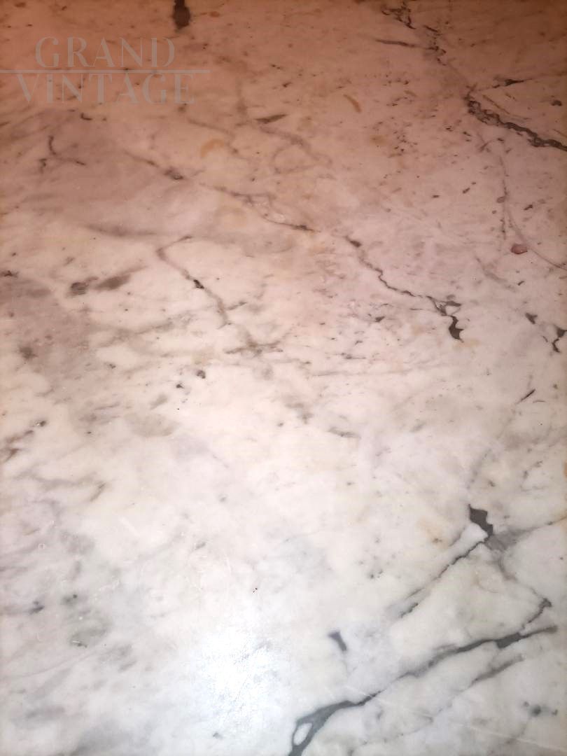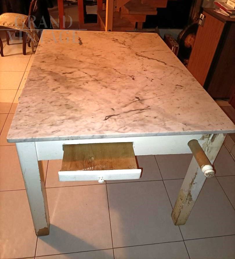 Tavolo da cucina vintage con piano in marmo, cassetto, tagliere e mattarello
