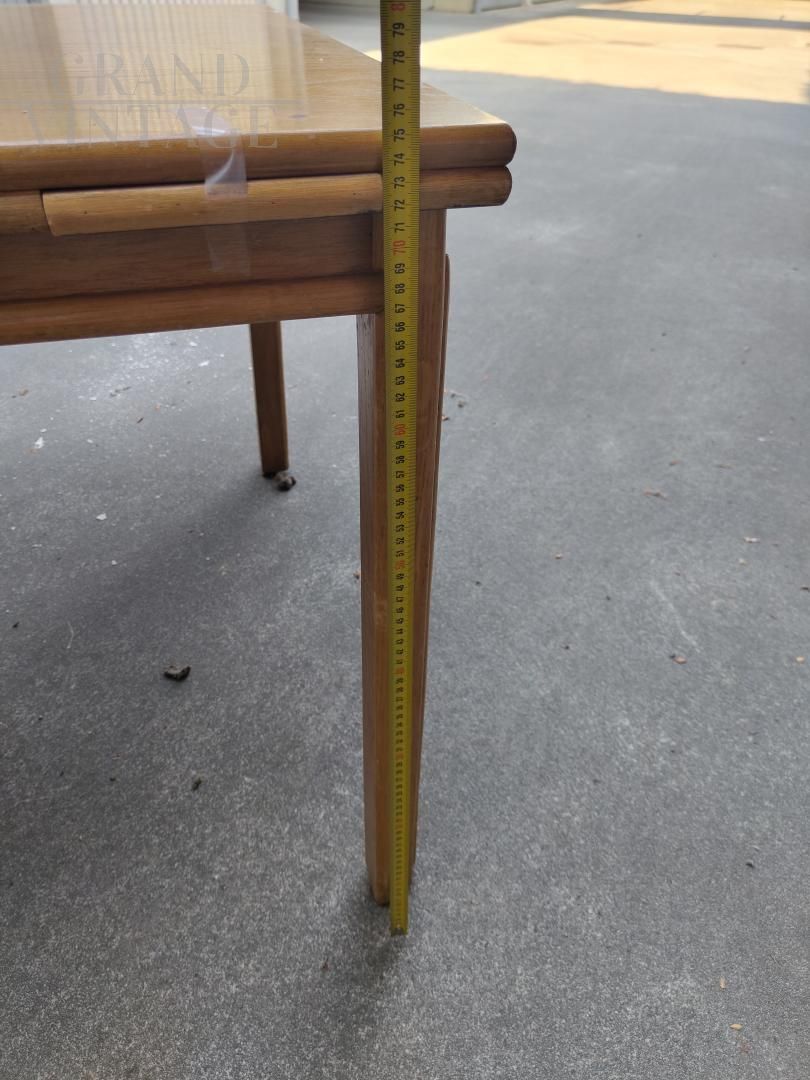 Tavolo da gioco design di Lyda Levi in bamboo e legno, anni '60. Presenta i naturali segni del tempo e qualche macchia sul piano, come da foto.