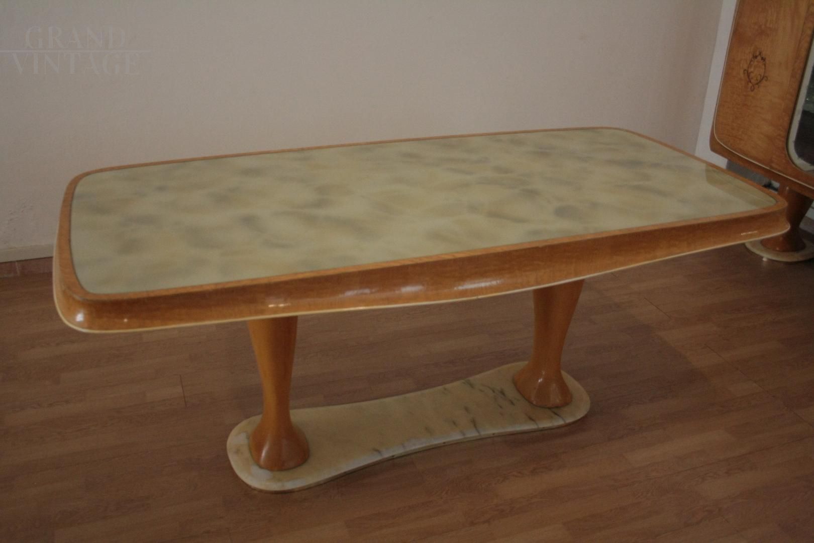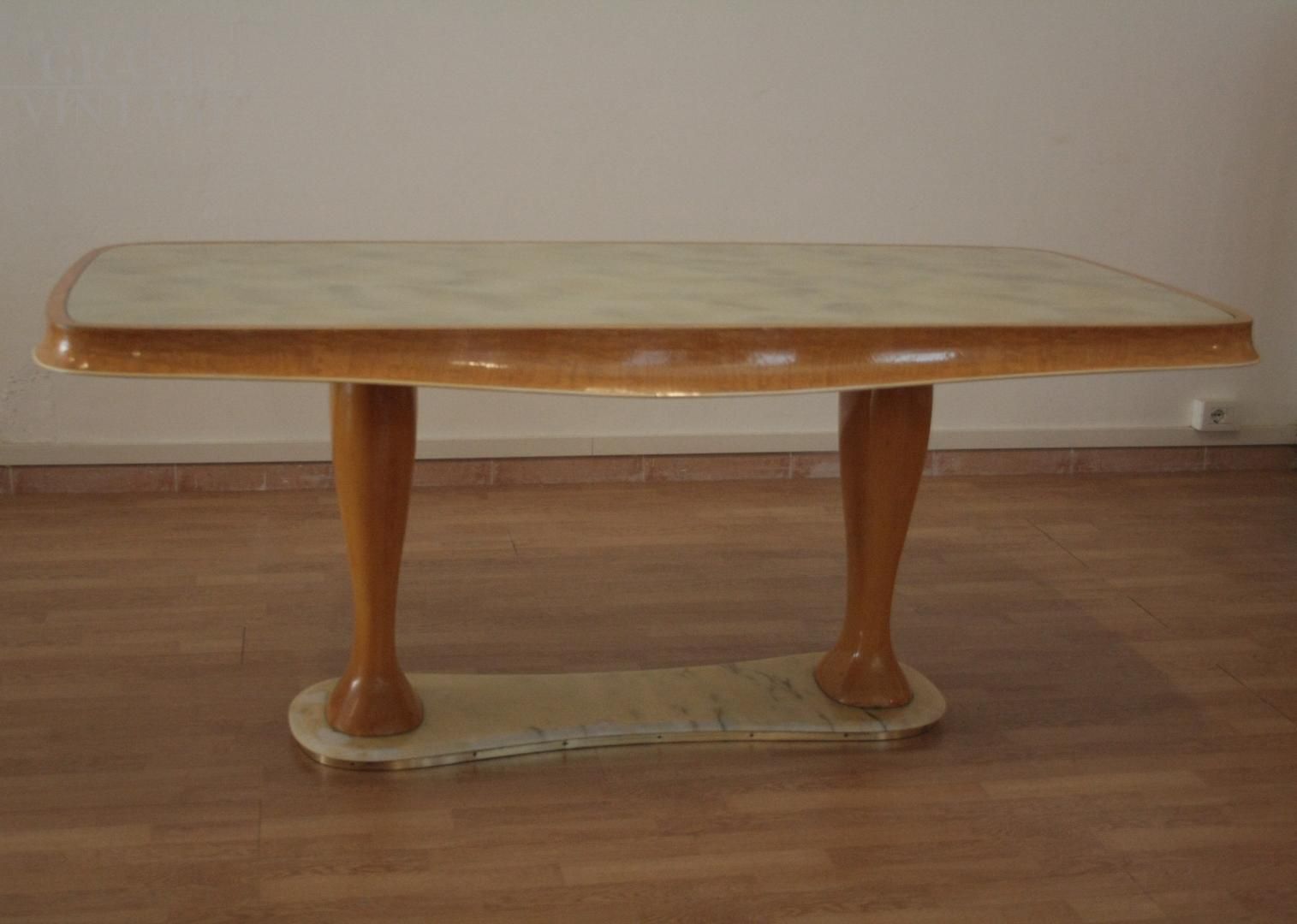 Tavolo da pranzo di Vittorio Dassi con base in marmo e piano in vetro