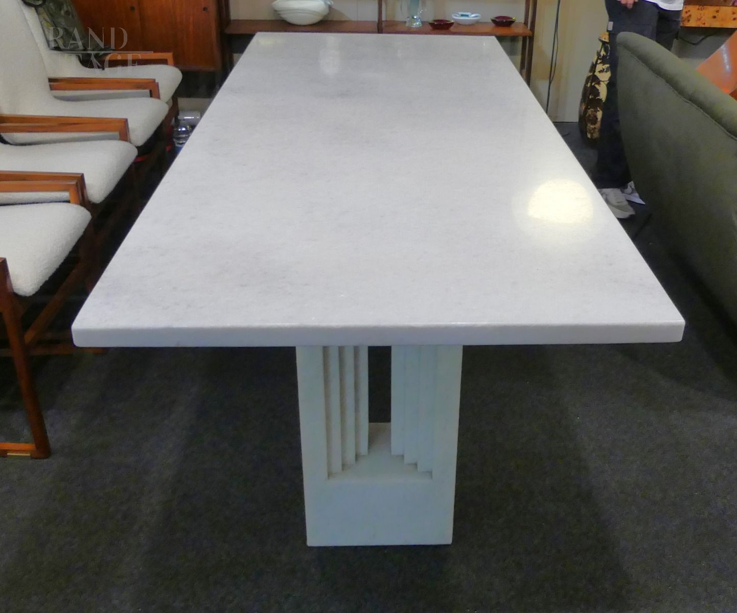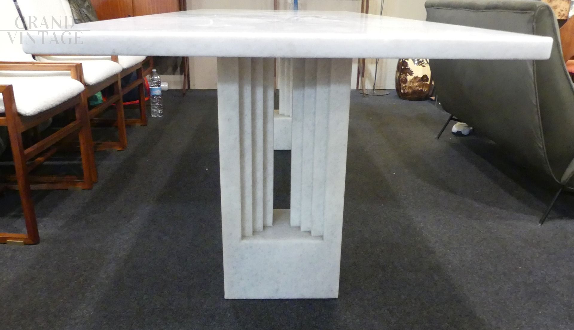Importante tavolo Delfi di Carlo Scarpa per Simon Gavina in marmo cristallino, della fine degli anni '60. Delfi è il risultato di una rielaborazione scarpiana di un tavolo concepito negli anni ’30 da Marcel Breuer.