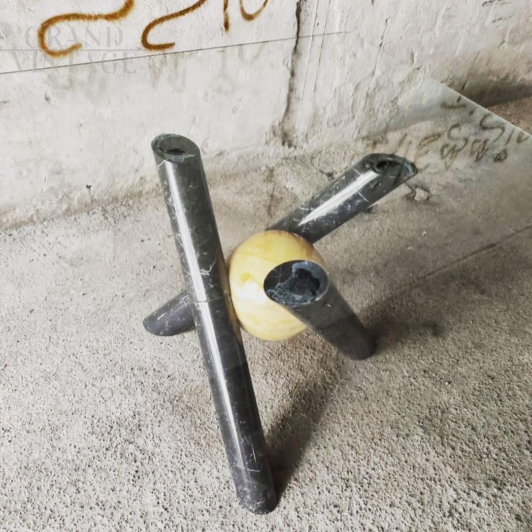 Tavolo design anni '70 in marmo nero e giallo e piano in vetro