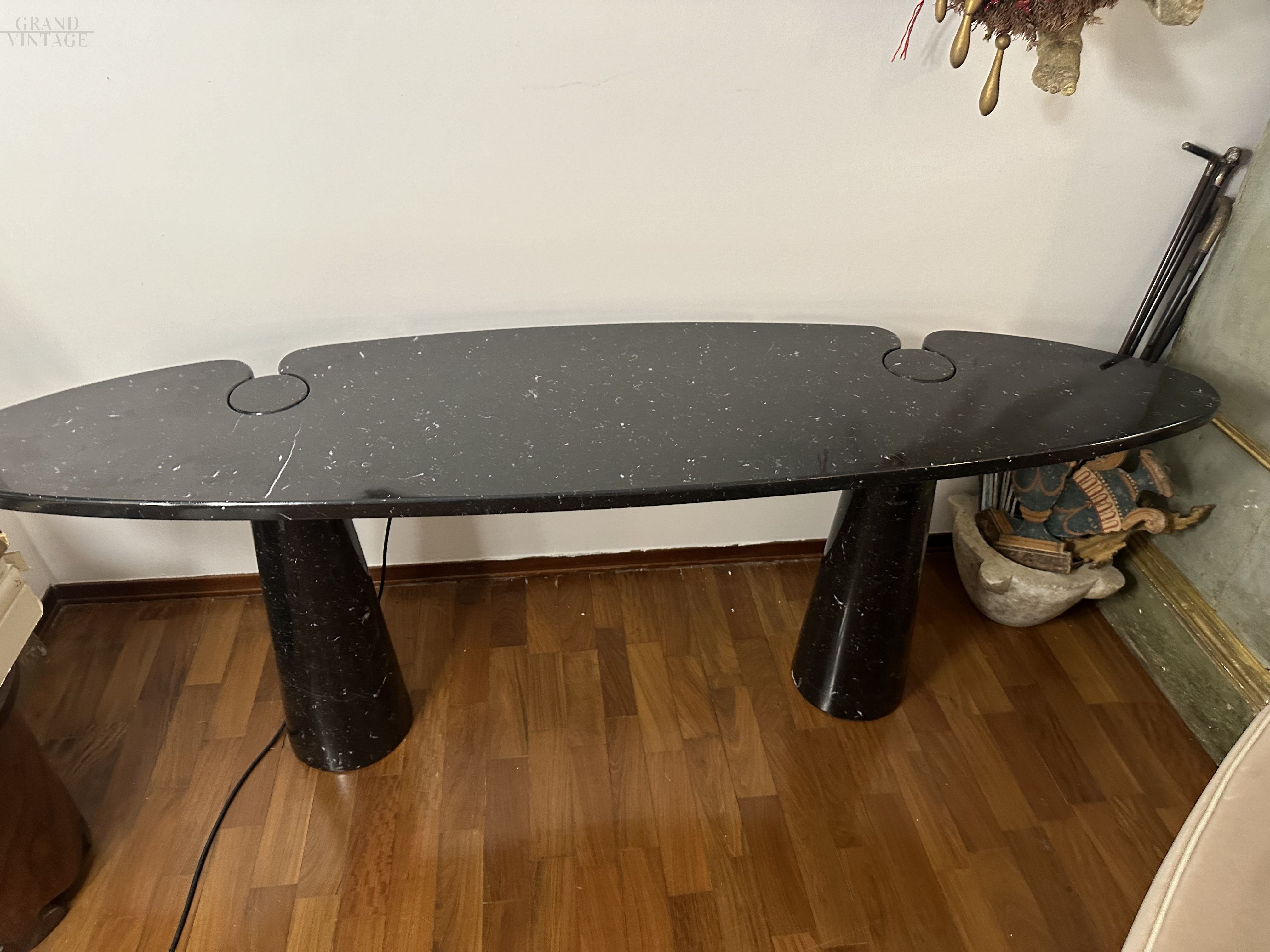 Grande tavolo console design di Angelo Mangiarotti per Skipper in marmo nero Marquina, con piano di forma ovale, con etichetta produttore.