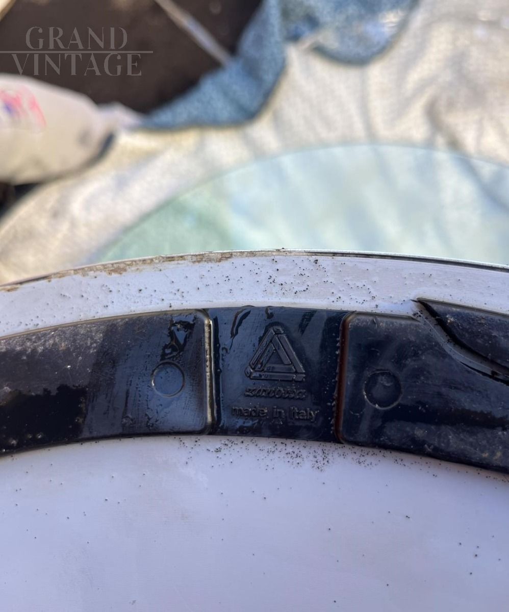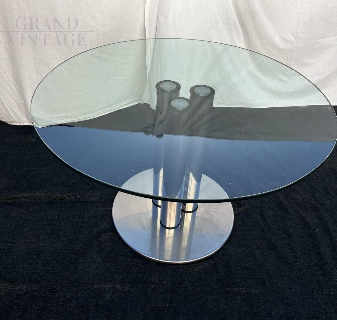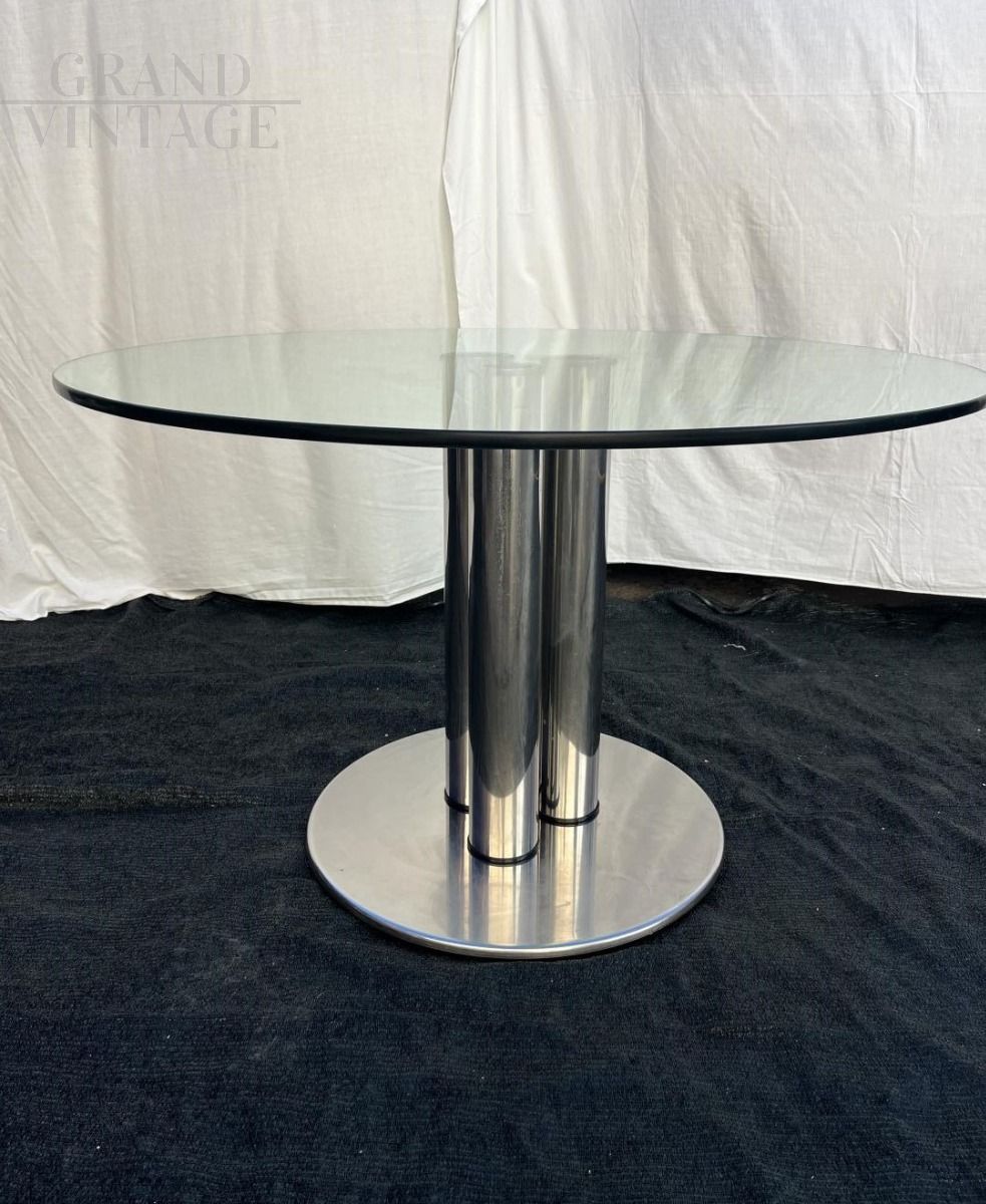 Tavolo design Marcuso di Marco Zanuso per Zanotta con piano rotondo in vetro