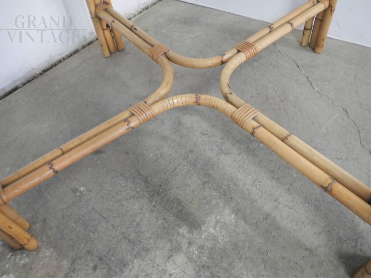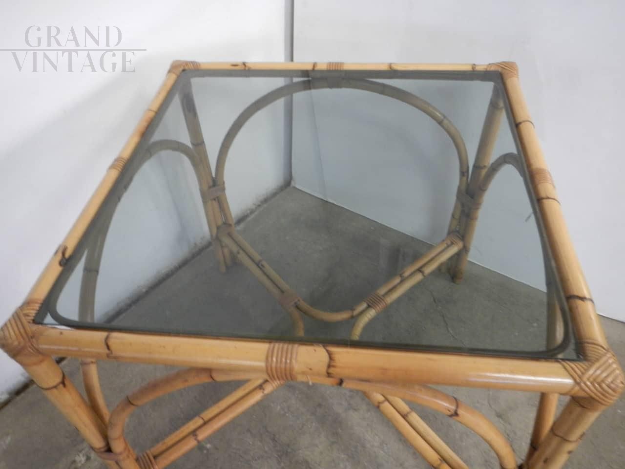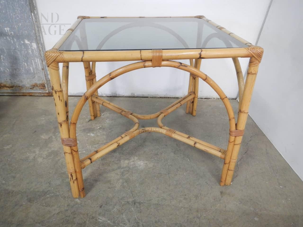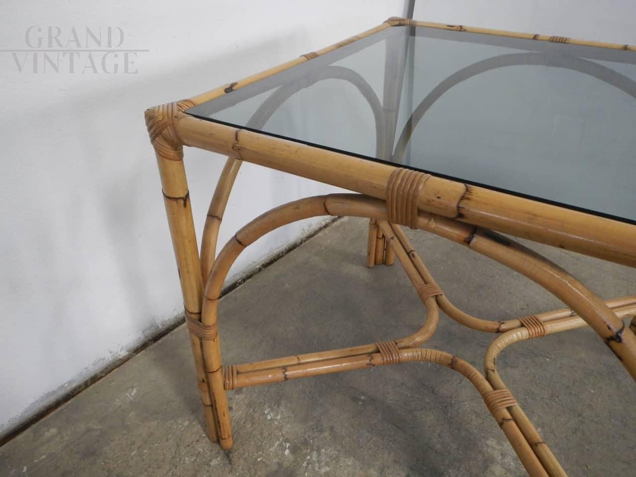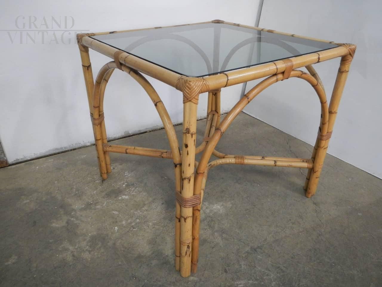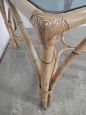 Tavolo in bamboo con piano in vetro, vintage anni '70