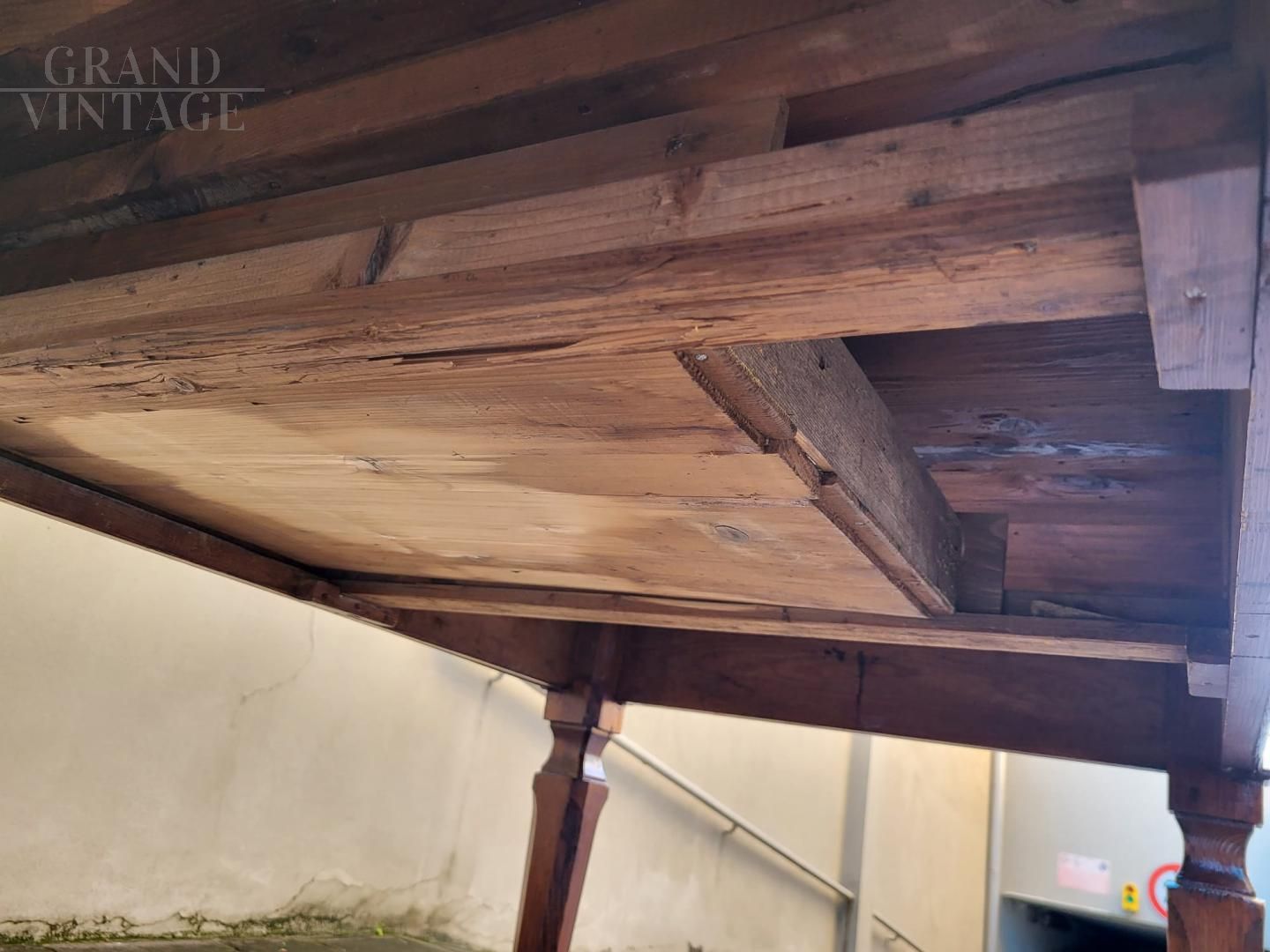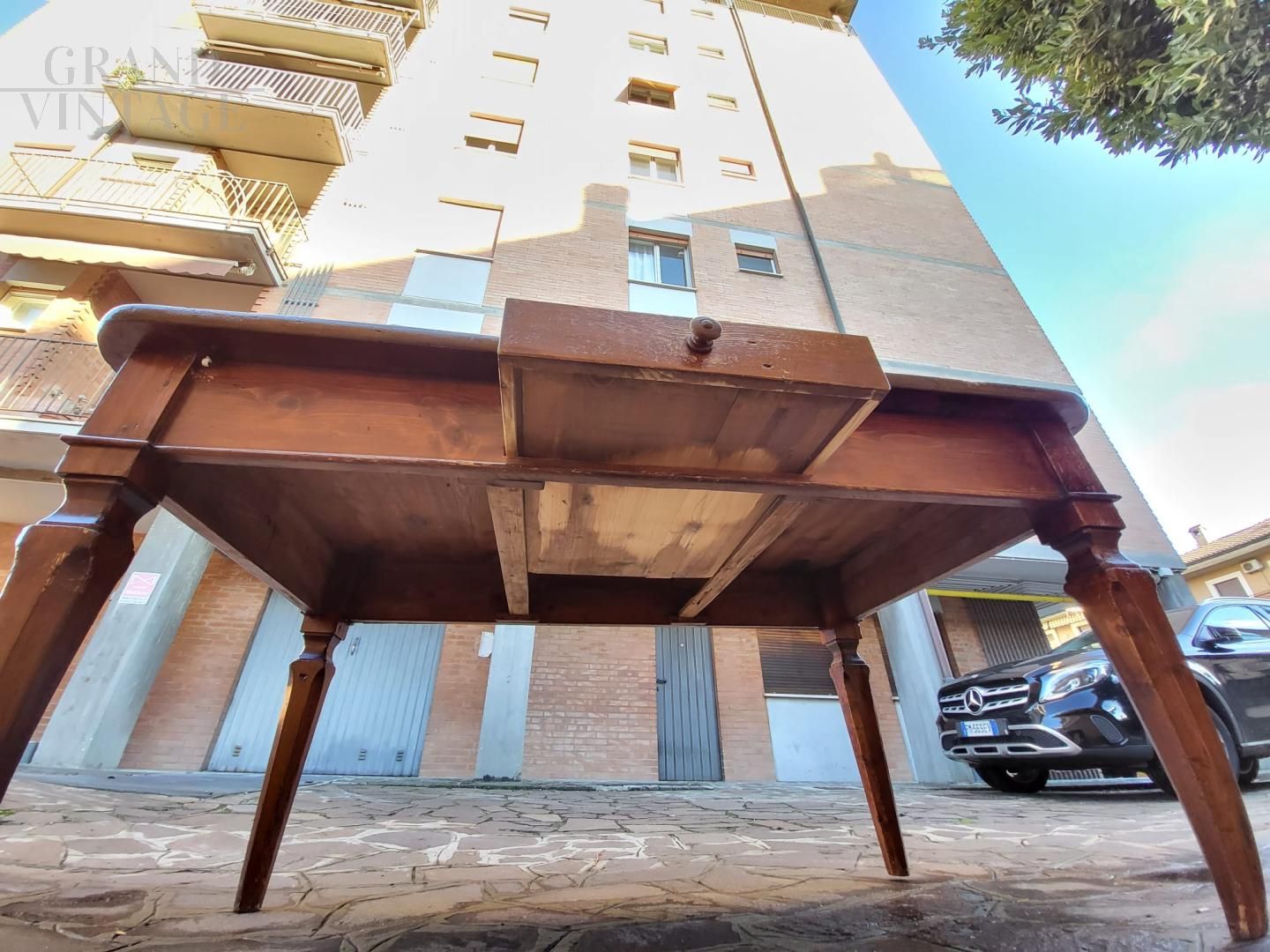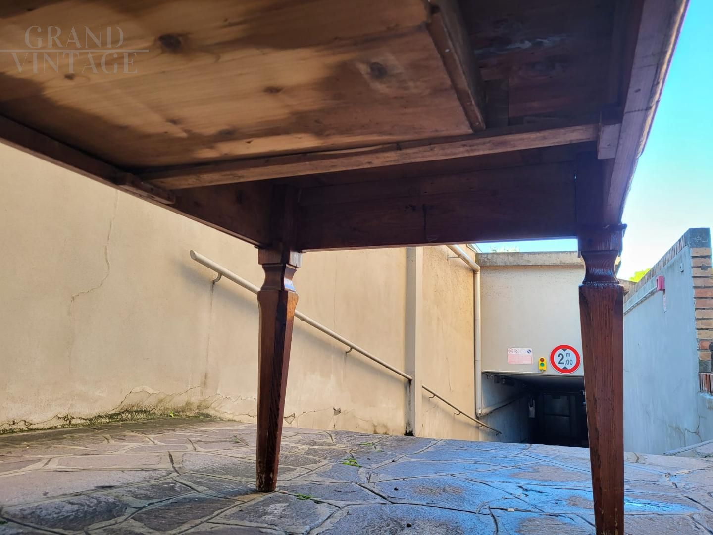Tavolo in stile Luigi XVI con piedi tronco piramidali strozzati, completo di cassetto. Materiale : legno di pino. Presenta i naturali segni del tempo.