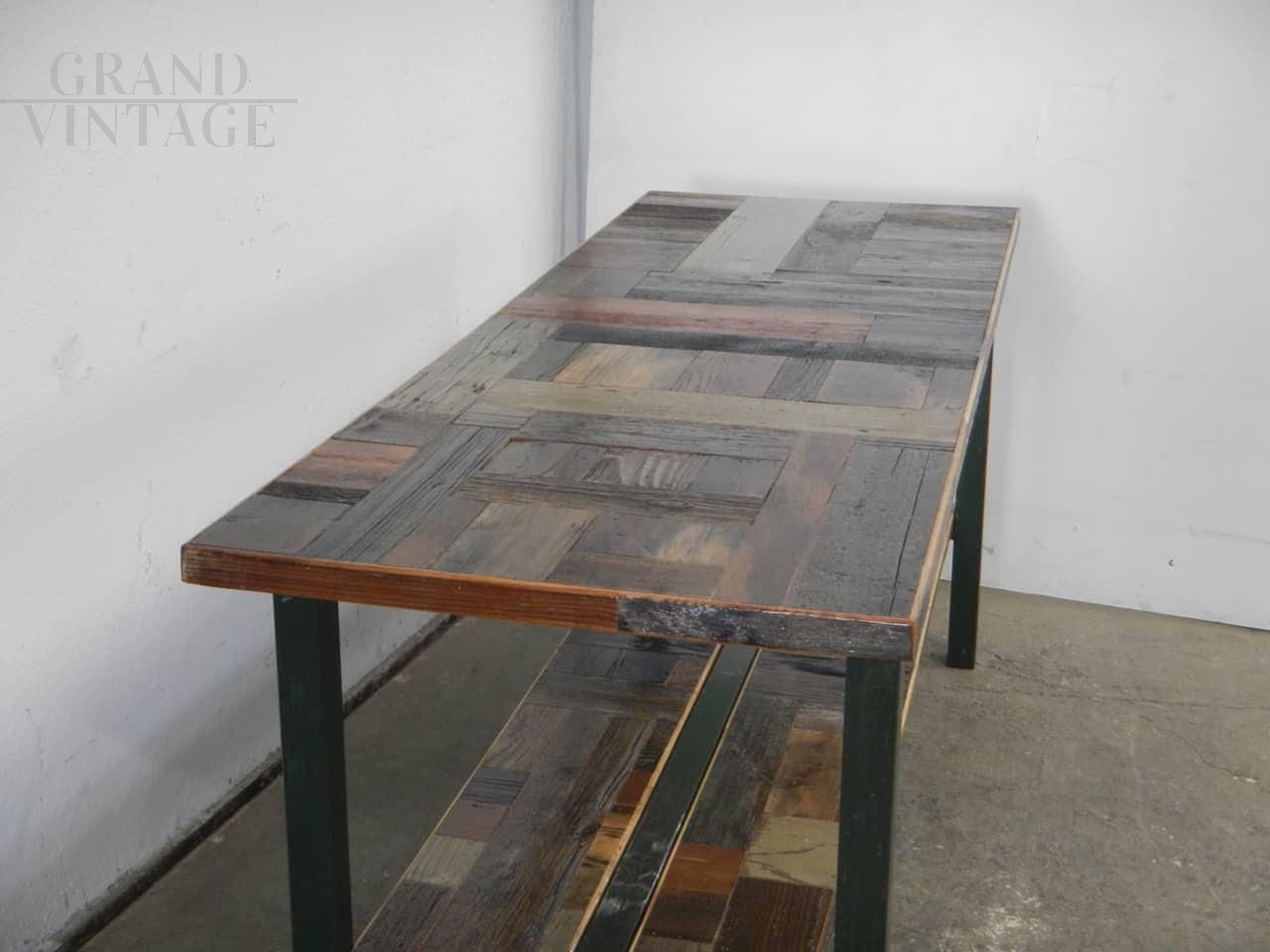 Tavolo industriale da officina in legno patchwork anni '70