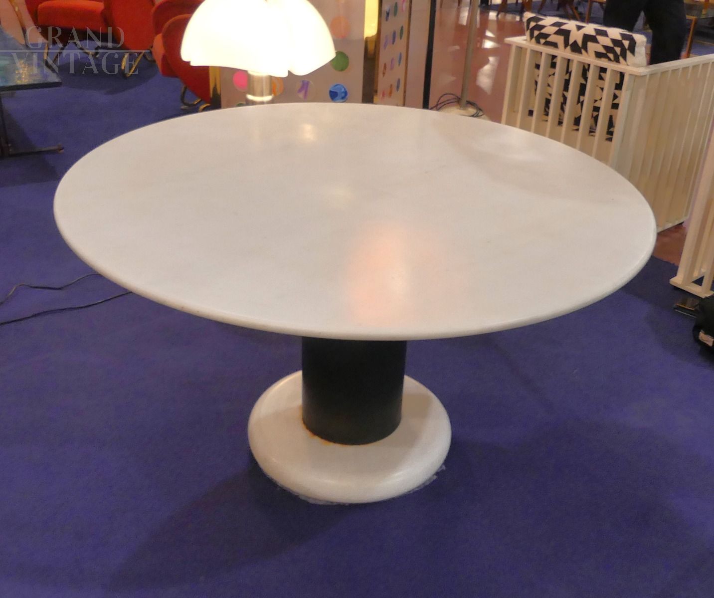 Magnifico tavolo Loto Rosso di Ettore Sottsass per Poltronova, prodotto nel 1960 in marmo bianco e metallo laccato nero, in ottime condizioni.
