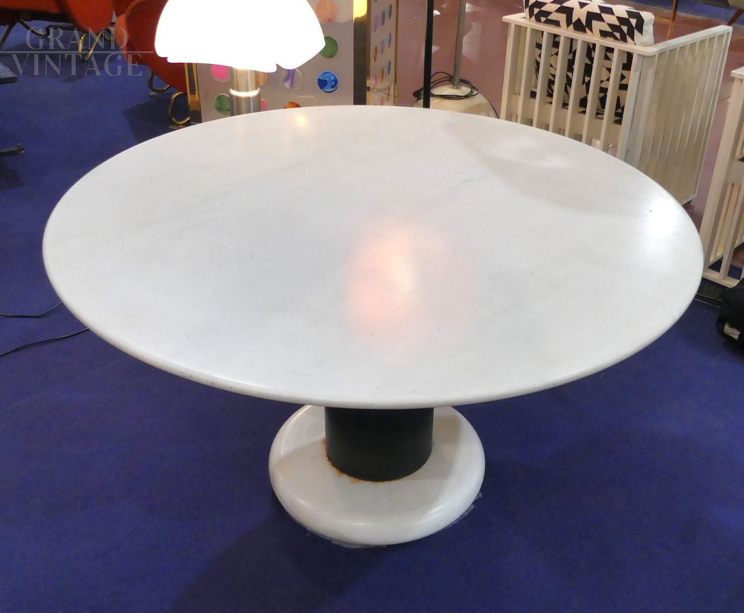 Tavolo Loto Rosso di Ettore Sottsass per Poltronova in marmo bianco