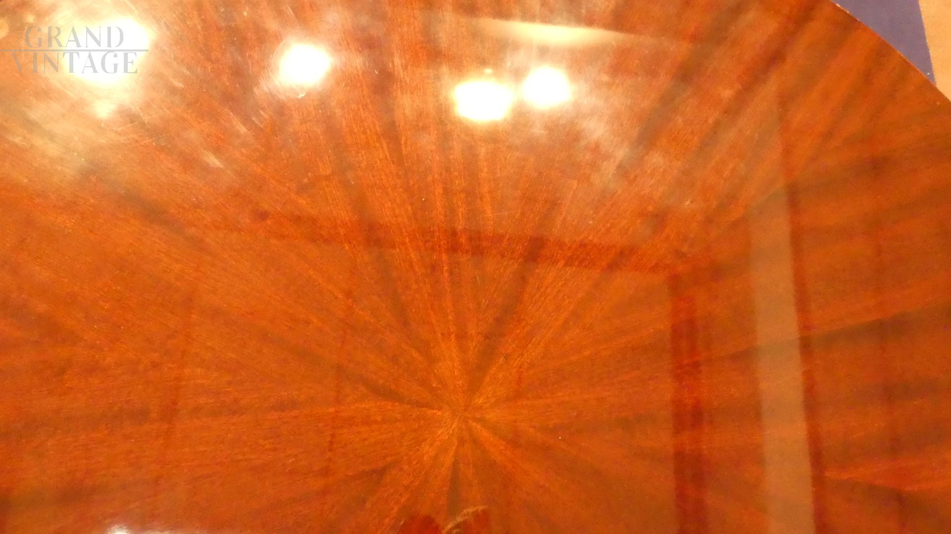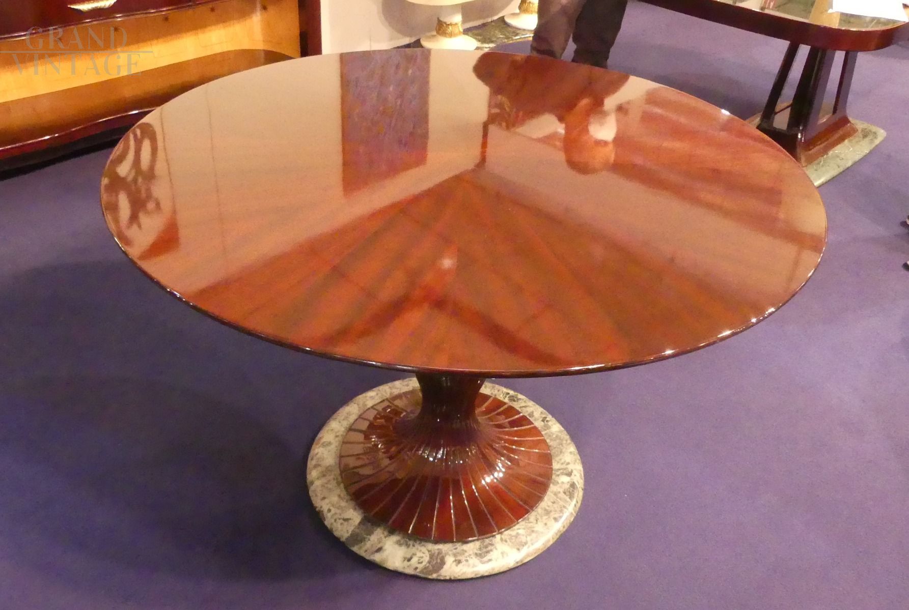 Tavolo di Osvaldo Borsani anni '50 con piano rotondo, in legno di palissandro, con bellissima gamba scanalata dalla particolare forma bombata e piede in marmo verde alpi.