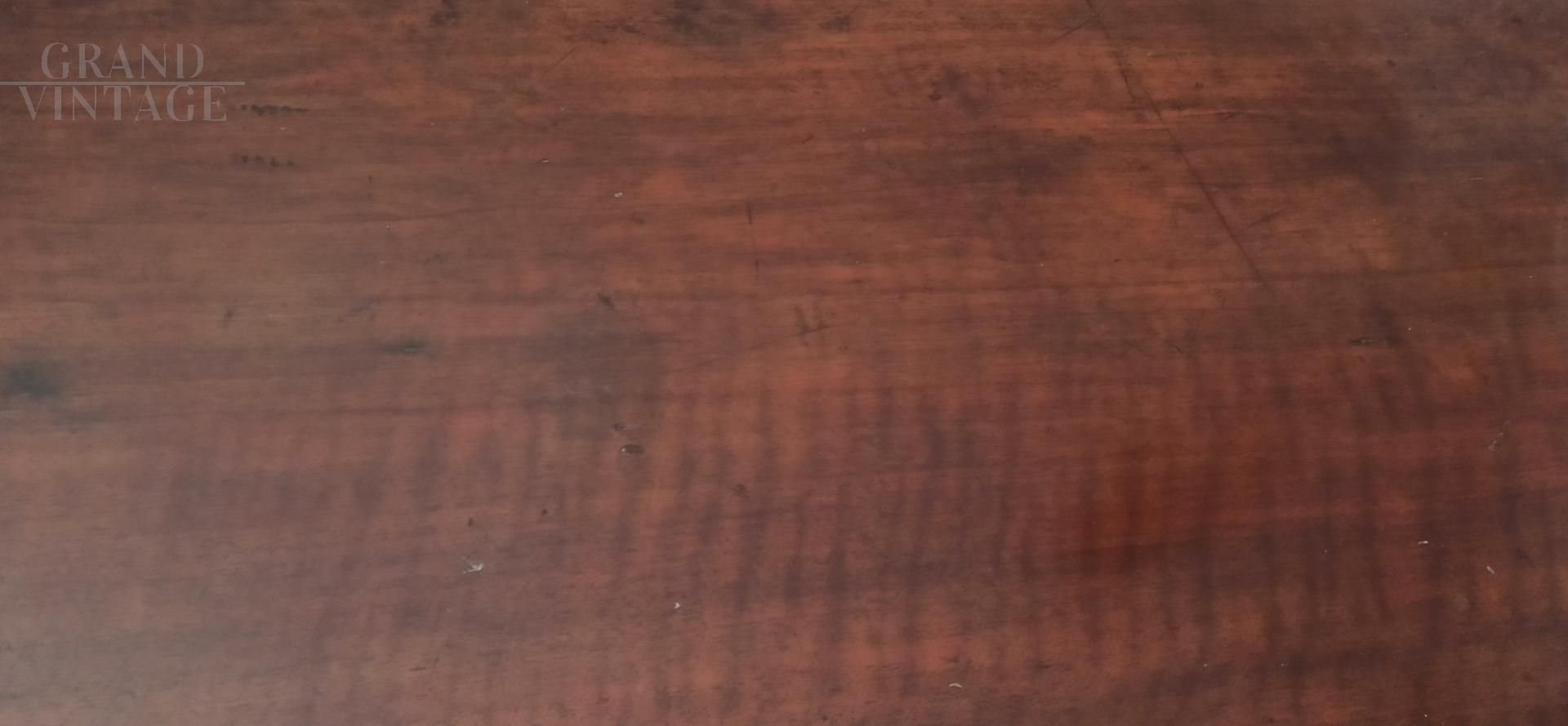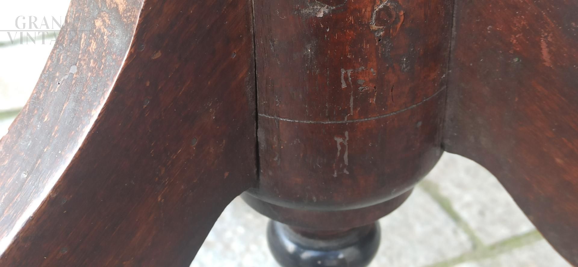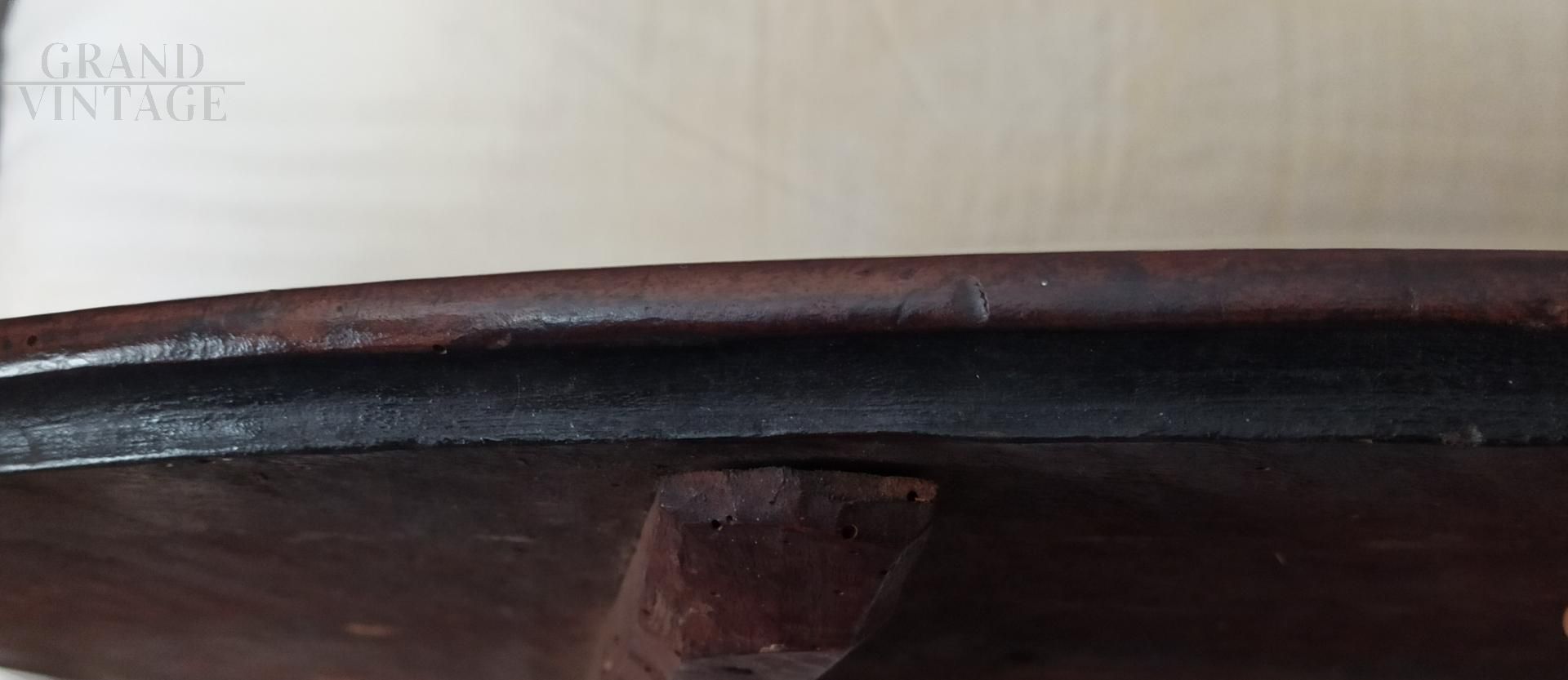 Tavolo ovale della prima metà del '700 in stile barocco, in noce massello ma rezzato (striato), integro, in prima patina (pulizia al piano).