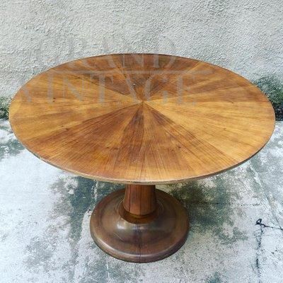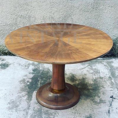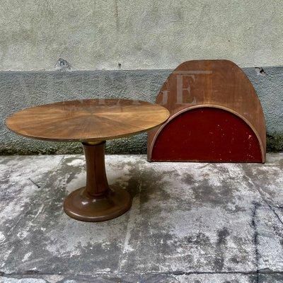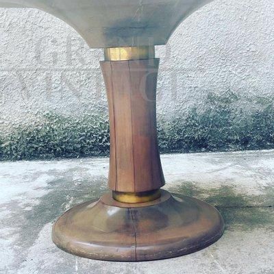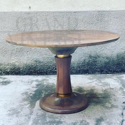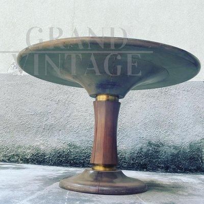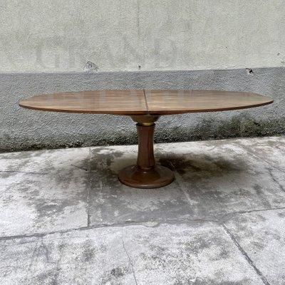 Tavolo rotondo allungabile in noce massiccio e ottone, anni '50