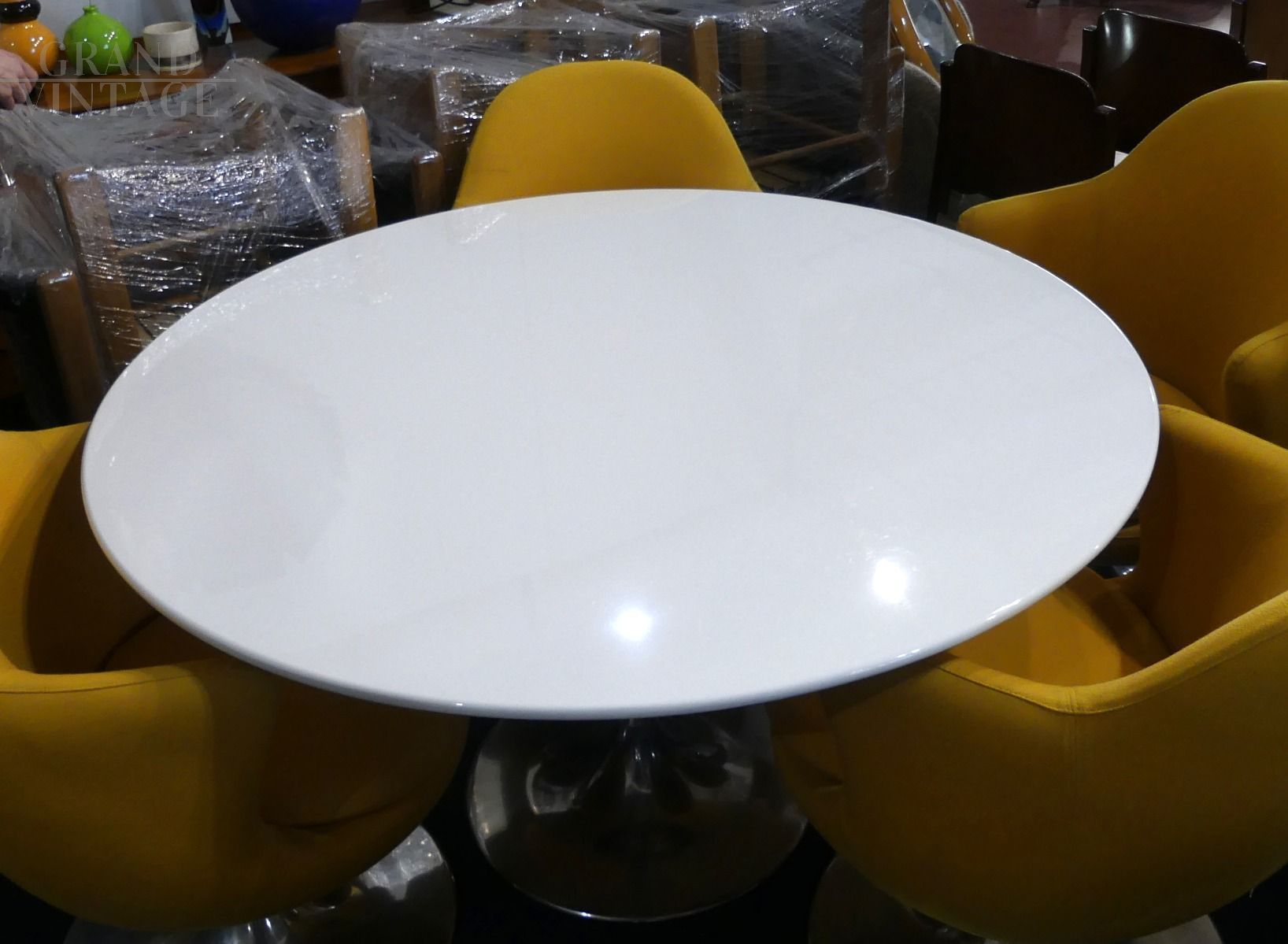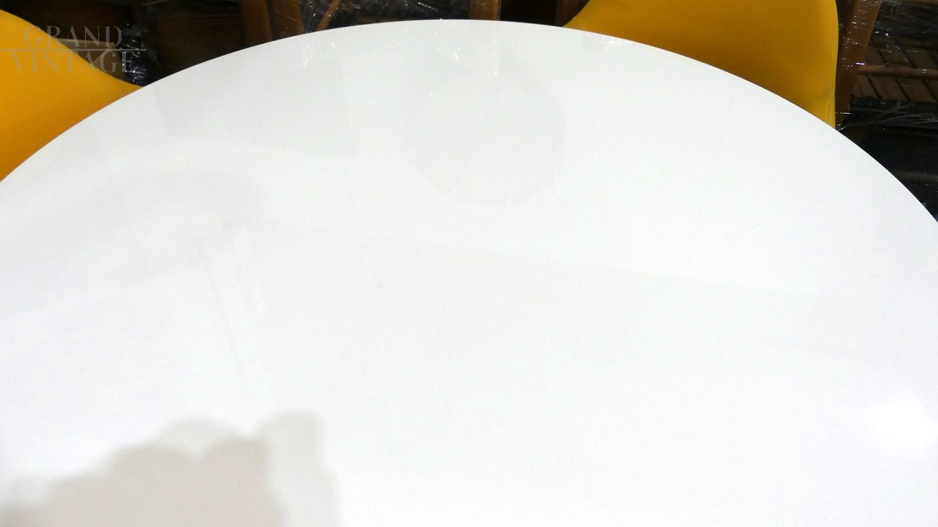Tavolo design di Ammannati e Vitelli per Brunati con forma Tulip, piano in legno laccato bianco e stelo e base in metallo. In ottime condizioni, nuovo poiché derivante da un fondo di magazzino.