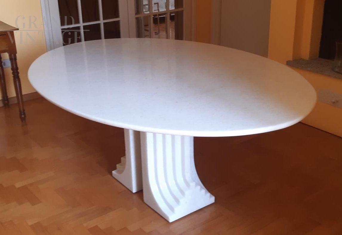 Tavolo da pranzo ovale modello SAMO disegnato da Carlo Scarpa nel 1970 e prodotto da Simon-Gavina in marmo di NAXOS bianco cristallino.