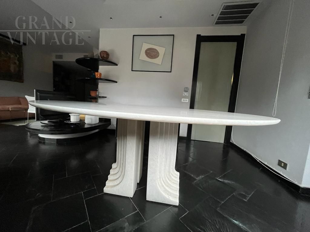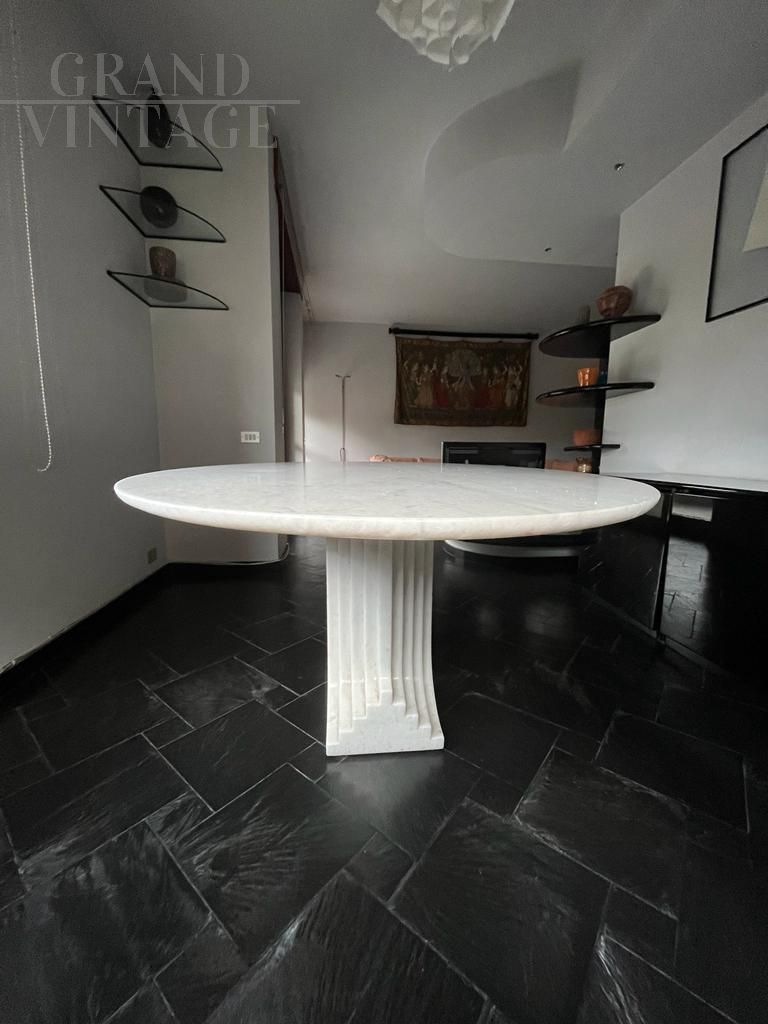 Tavolo ovale Samo design di Carlo Scarpa per Simon in marmo di Carrara bianco di qualità eccellente, privo di venature nere accentuate. In buone condizioni, Italia anni '70.