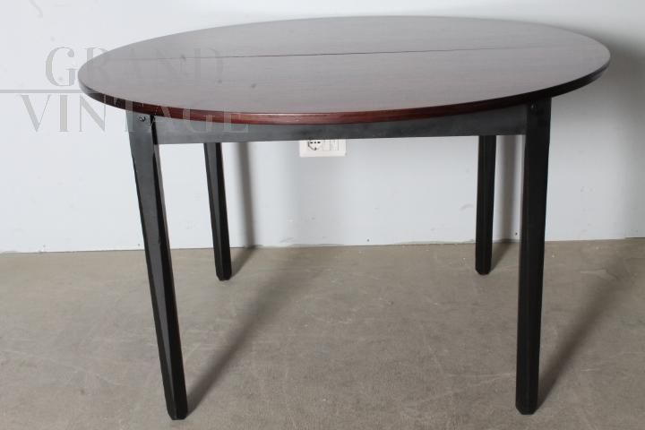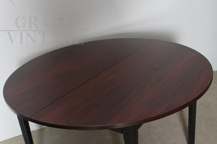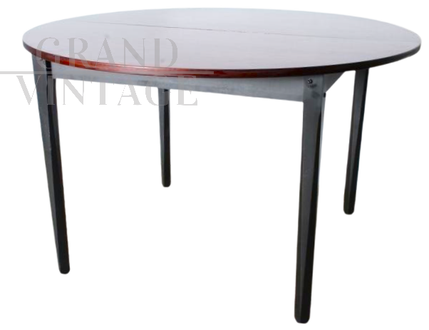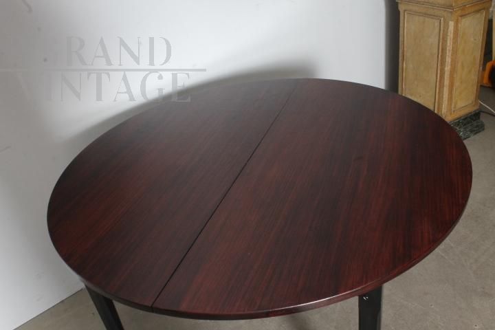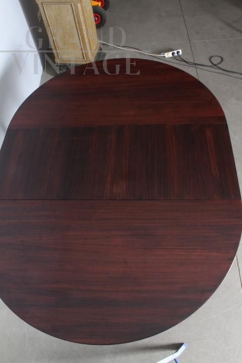 Tavolo Stildomus rotondo allungabile in legno di palissandro, design italiano anni '60, completo di prolunga interna e con marchio della ditta produttrice. Restaurato.