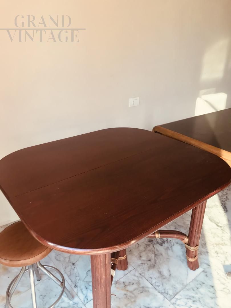 Tavolo design vintage anni '70 - '80 in legno, allungabile fino a 4 metri.