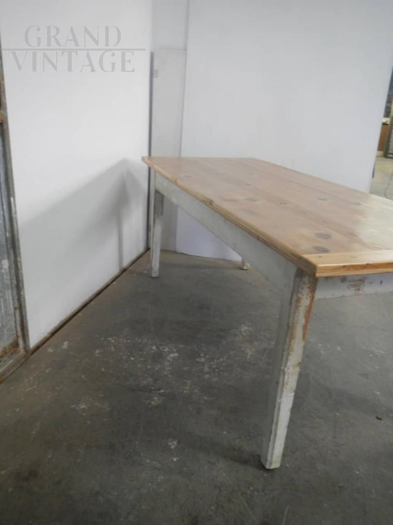 Tavolo vintage in legno di abete laccato bianco, anni '70