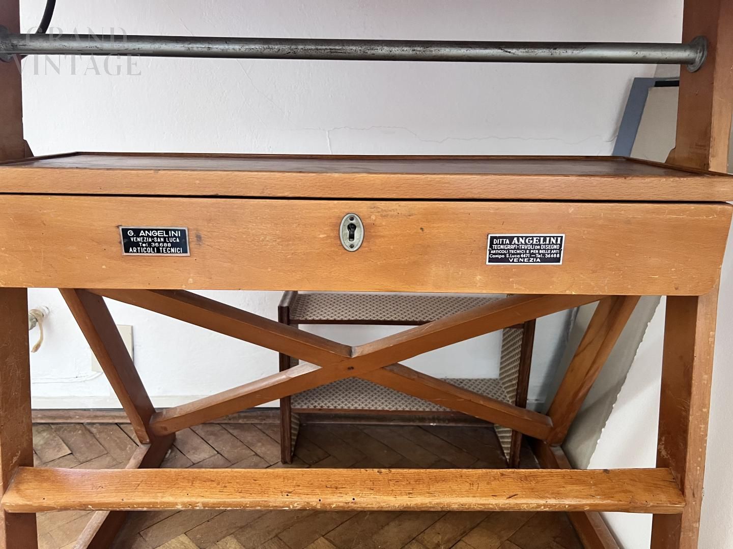 Bellissimo tecnigrafo vintage in legno degli anni '50/'60, prodotto dalla ditta Angelini di Venezia.