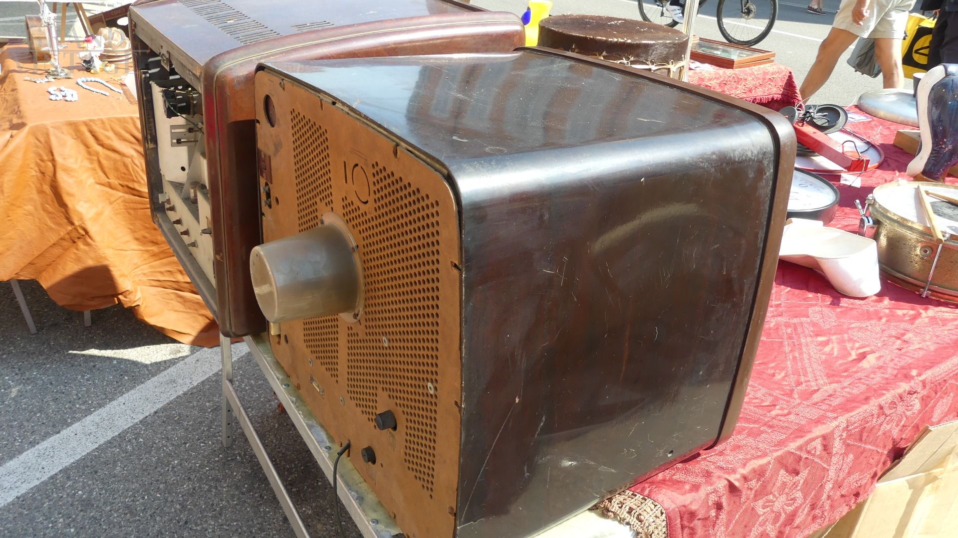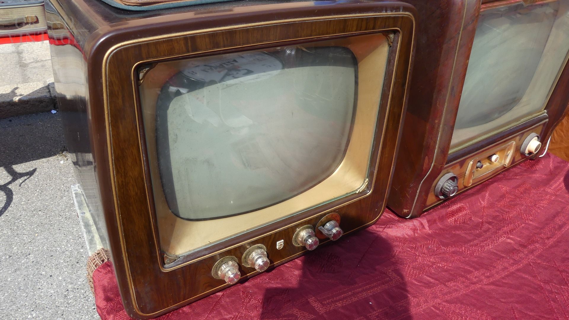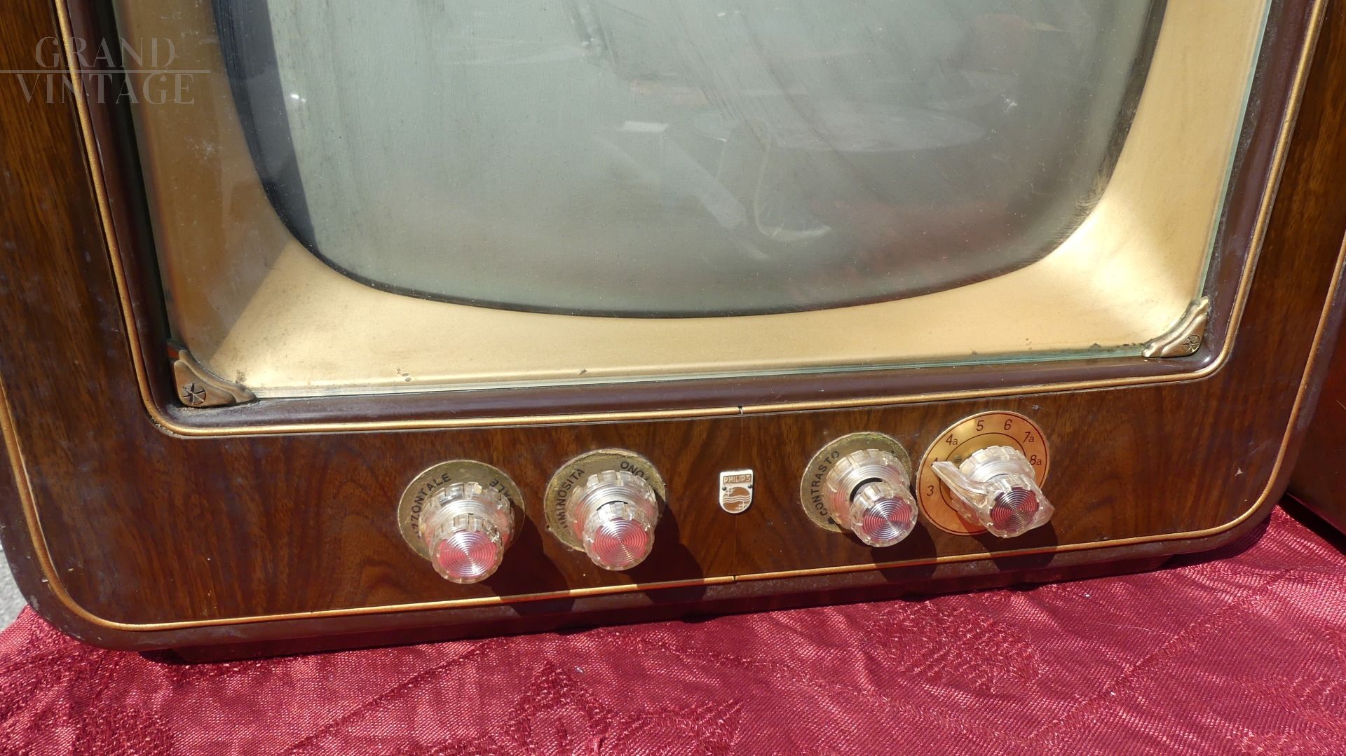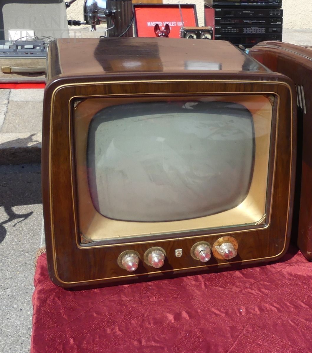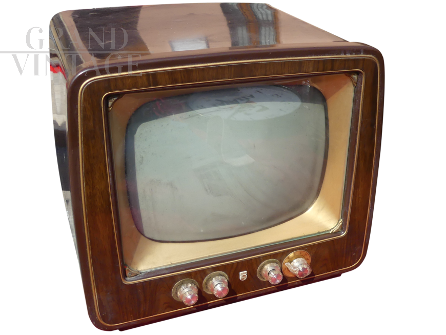 Televisore vintage Philips in bakelite marrone, anni '60.