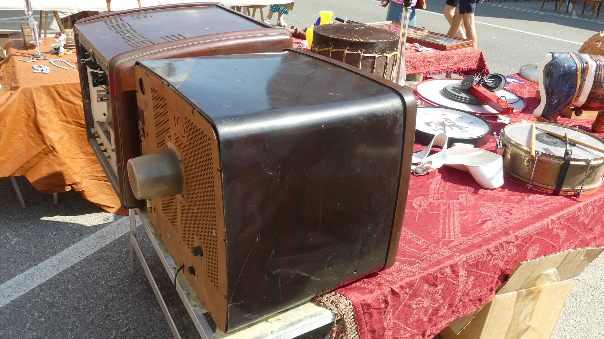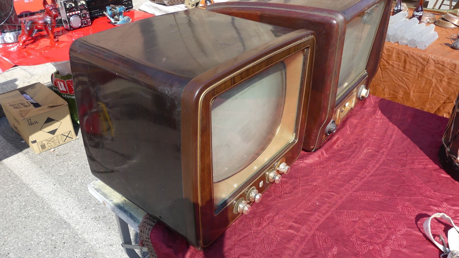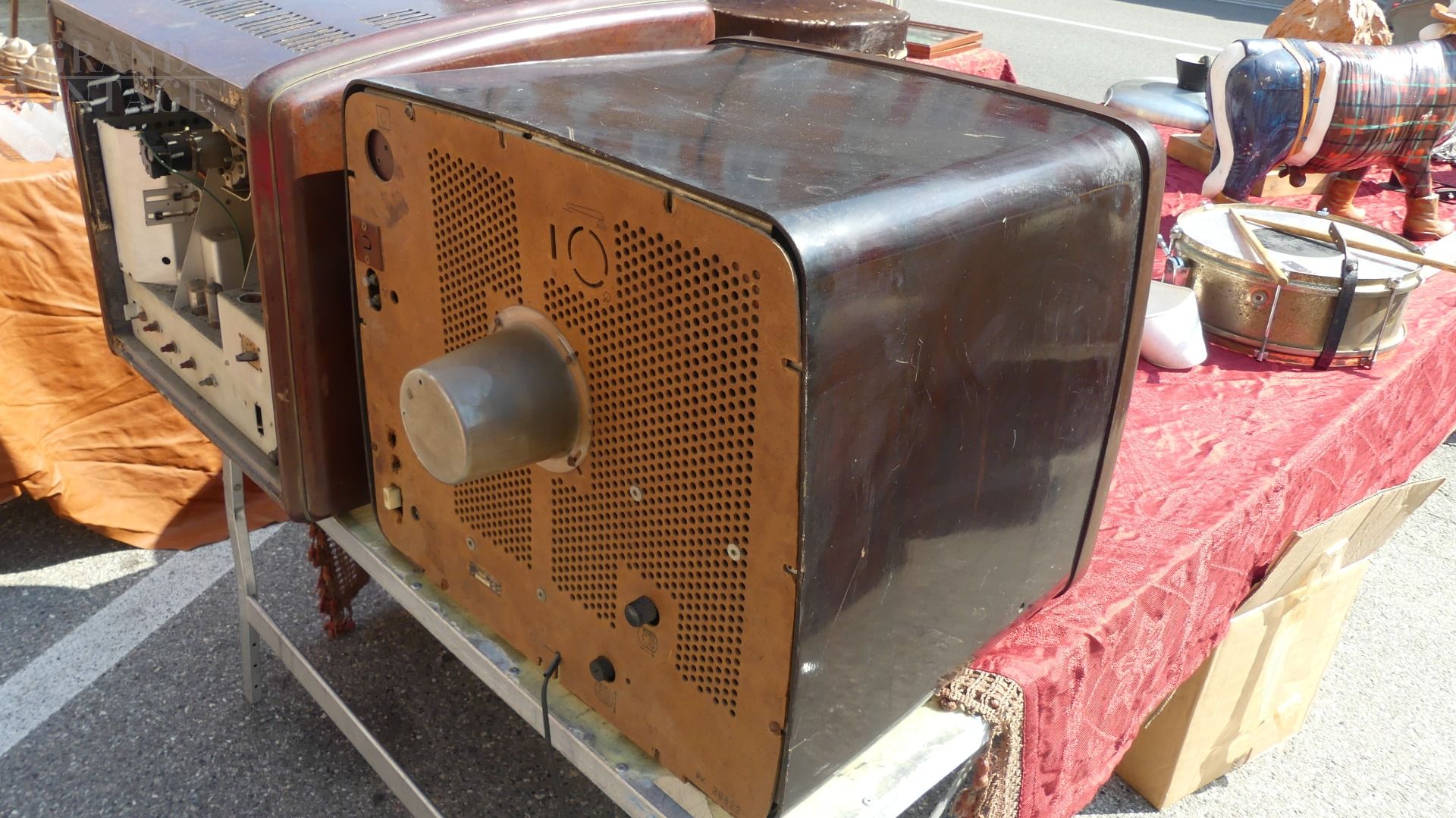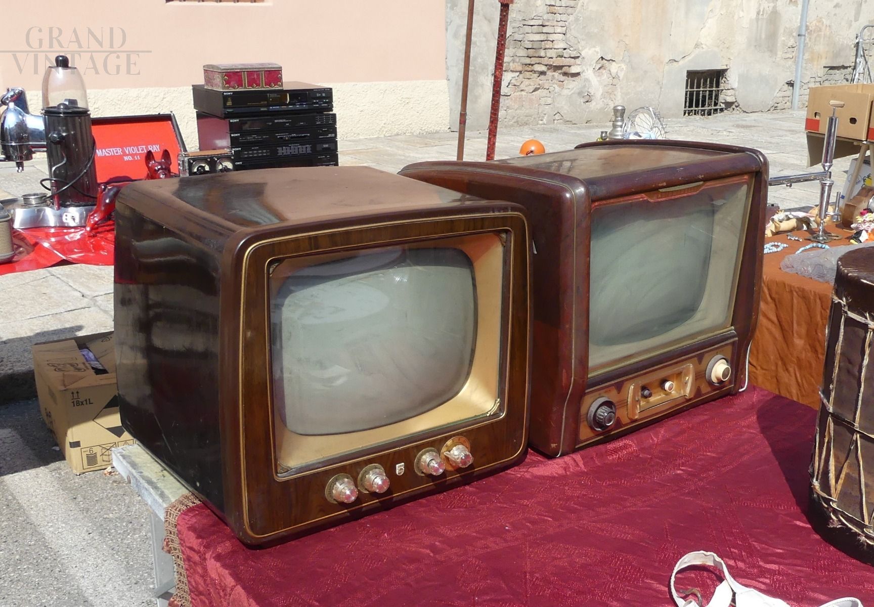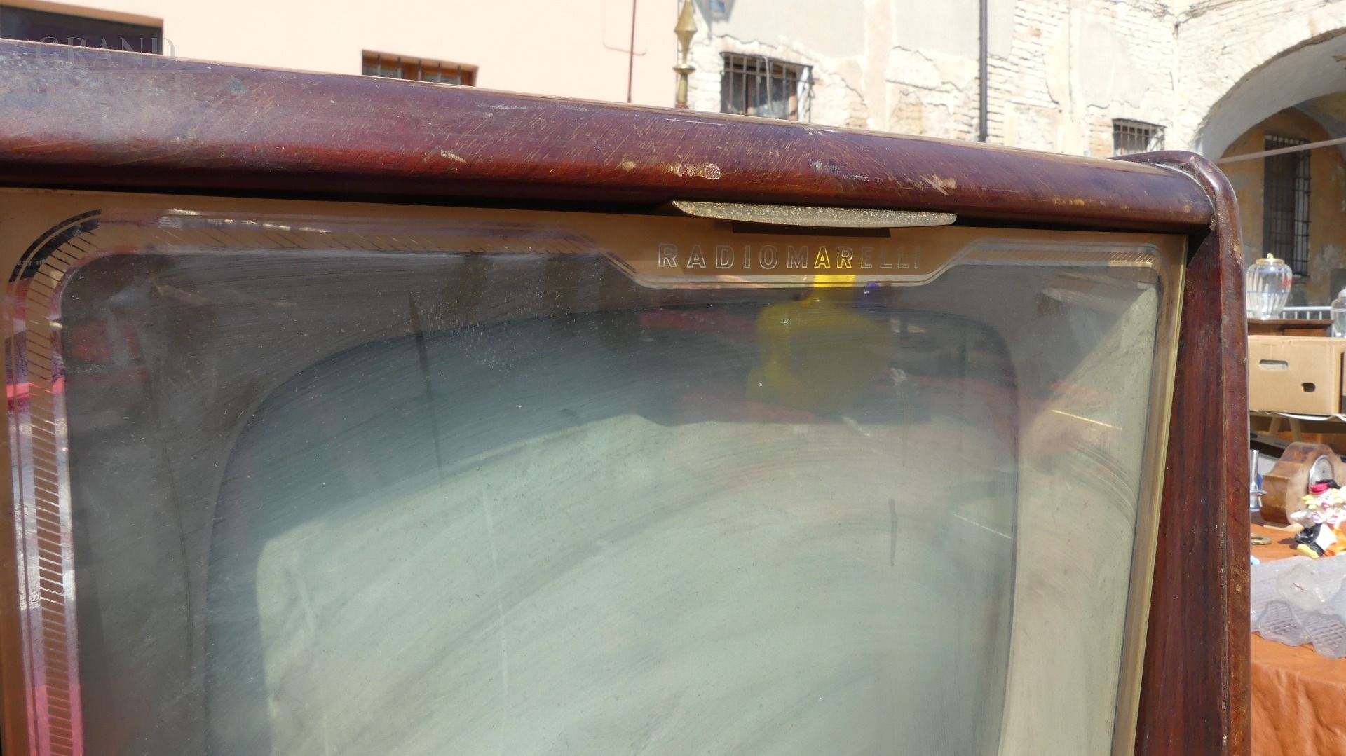 Televisore vintage Philips in bakelite marrone, anni '60.