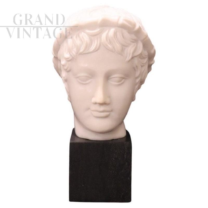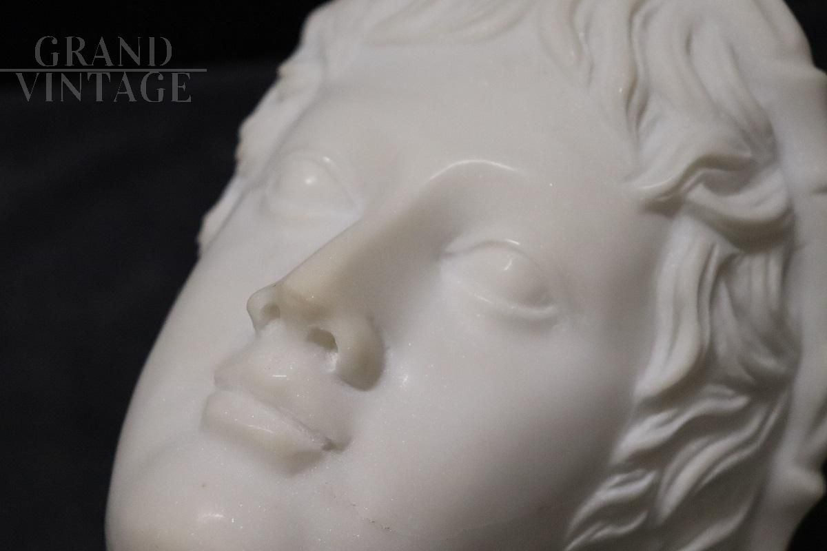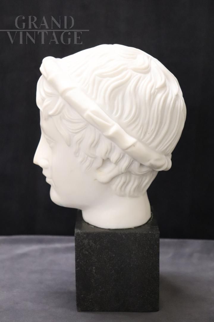 Testa di giovane Bacco, scultura classica in marmo bianco
